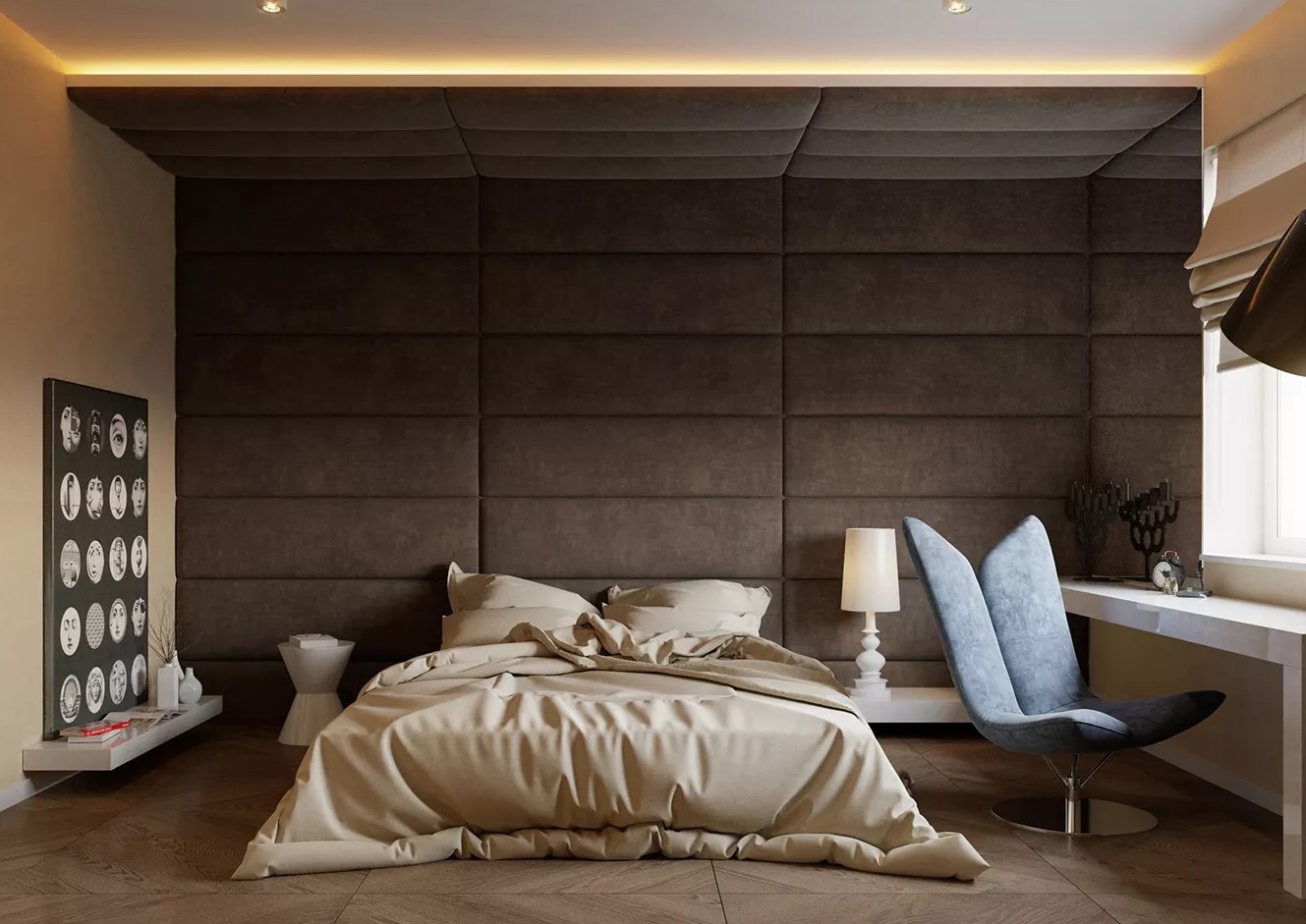 Мягкие панели в спальне