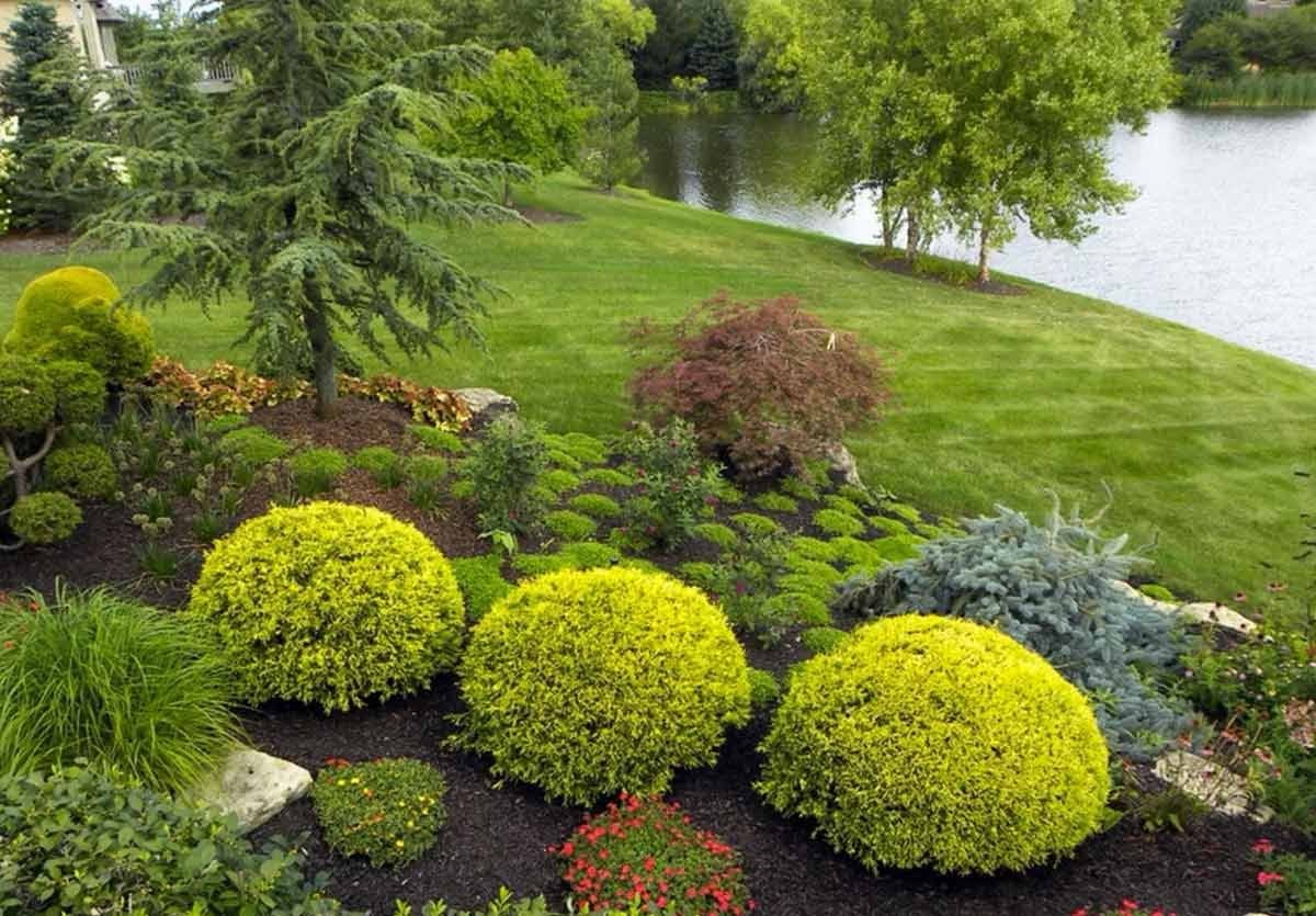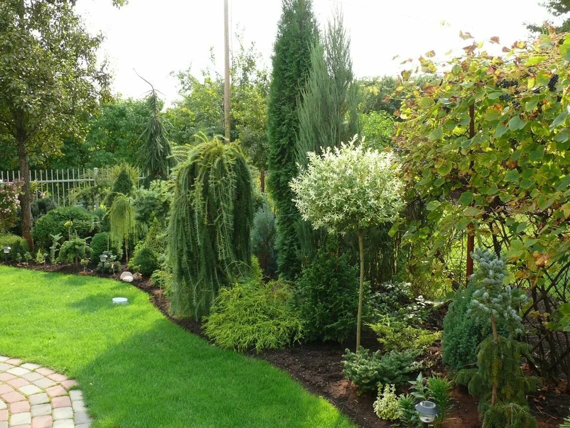 Миксбордер с хвойными и кустарниками
