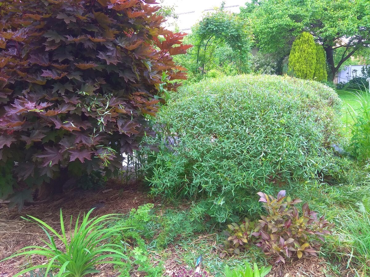 Ива пурпурная Нана в ландшафтном дизайне с хвойниками
