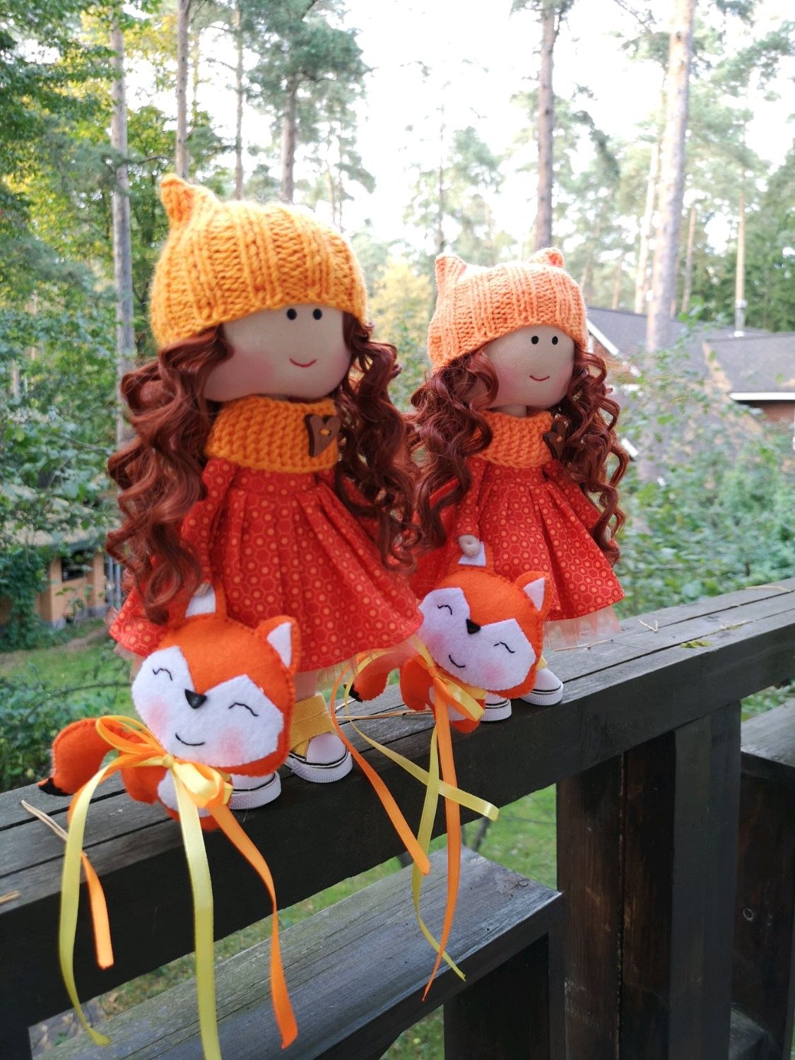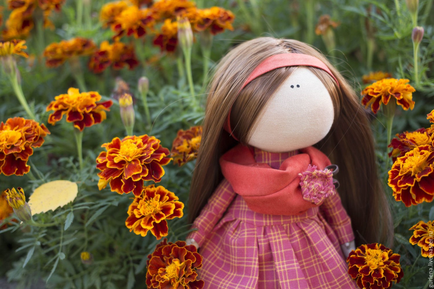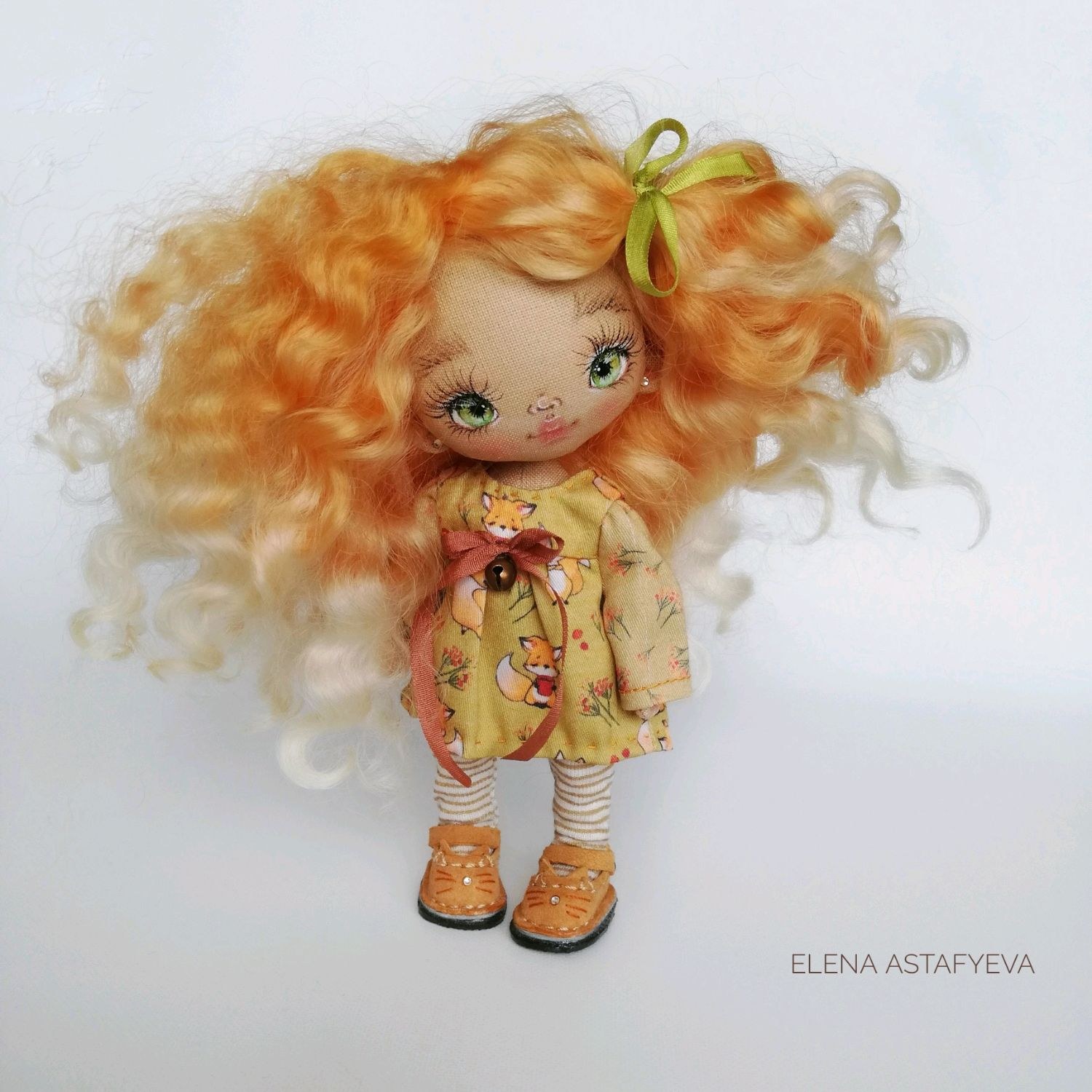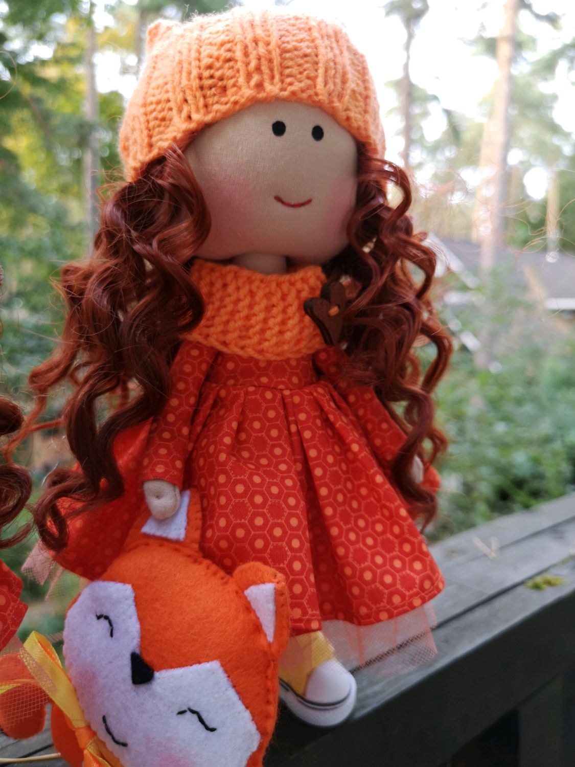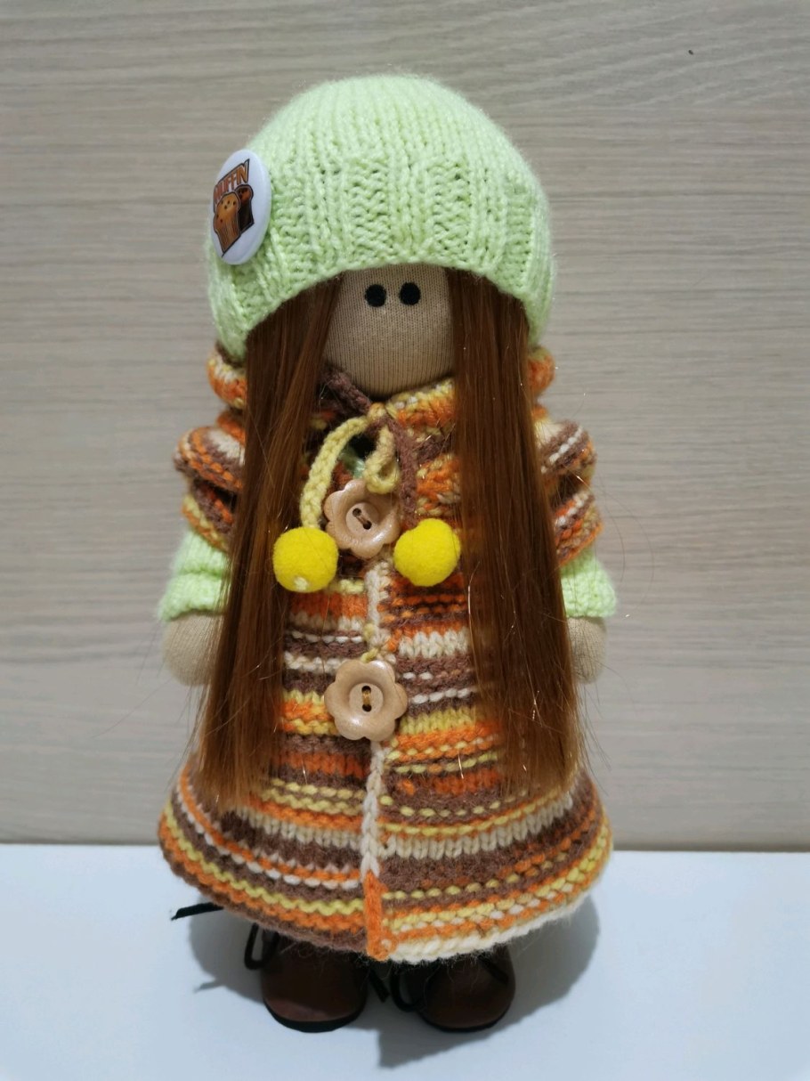 Текстильная кукла в оранжевом