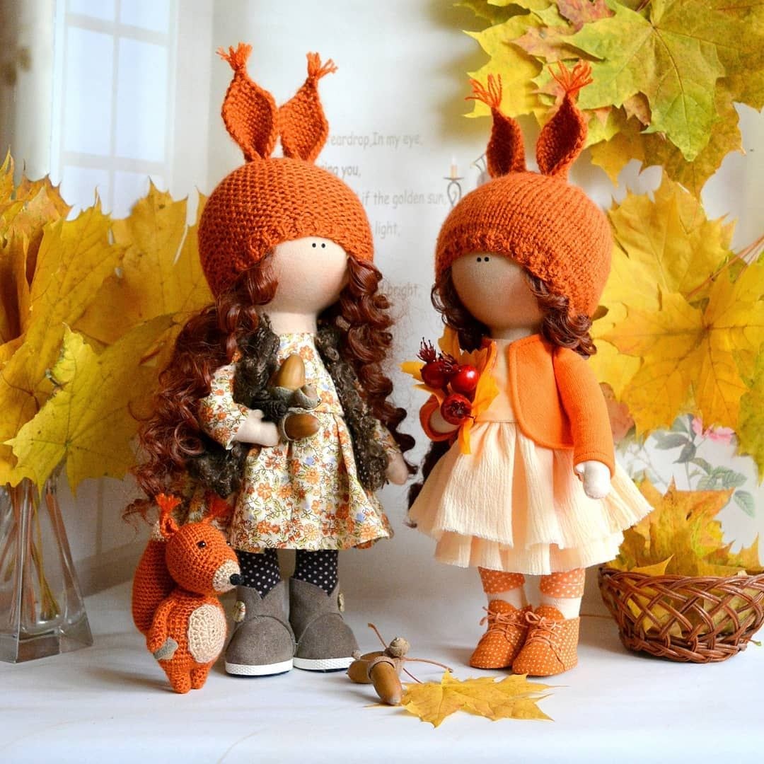 Текстильные куклы в осенних тонах