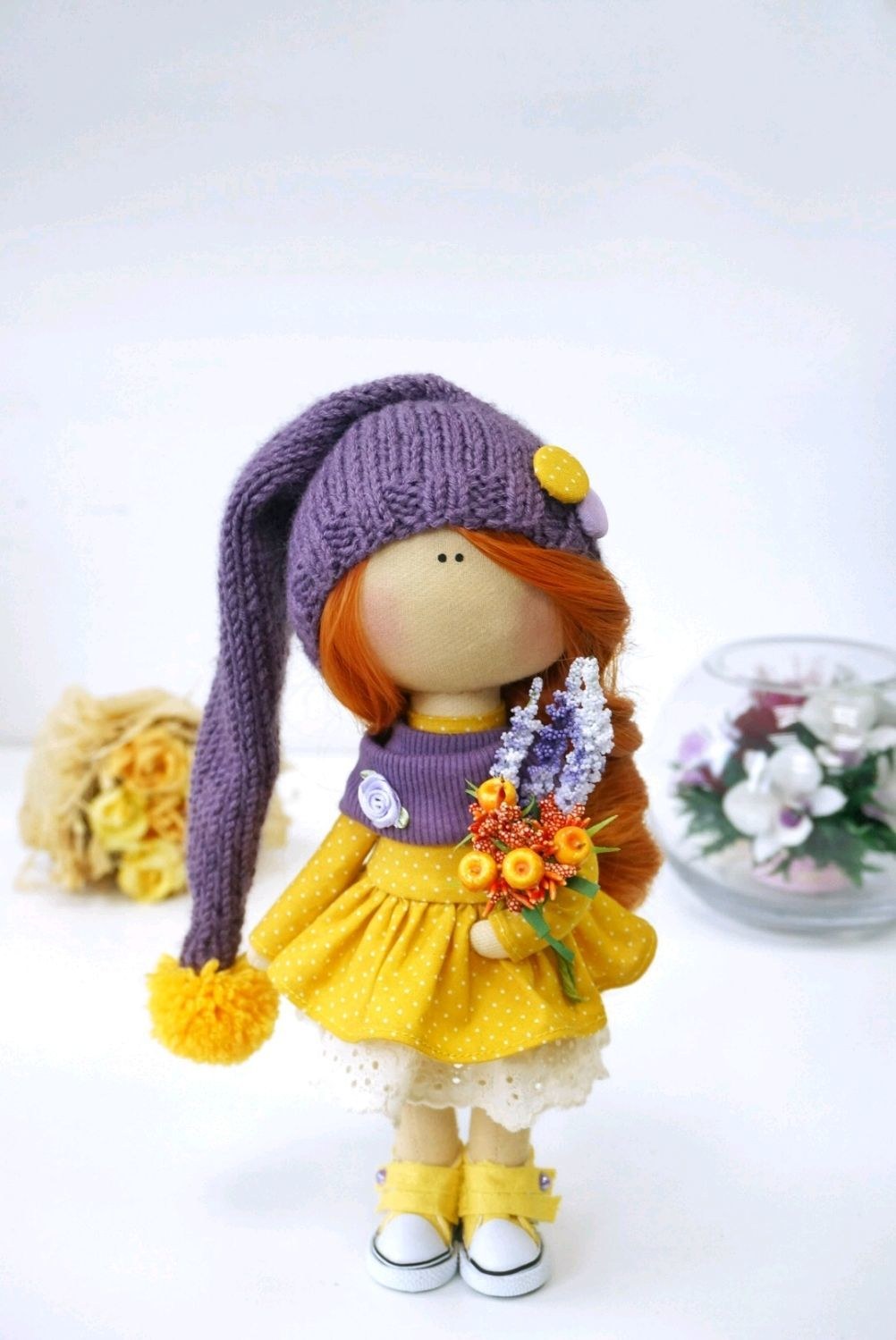 Текстильные интерьерные куклы в желтом
