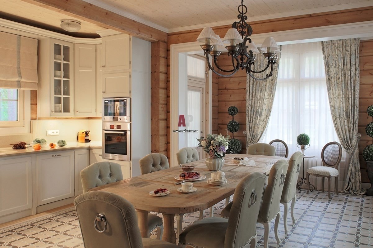 Кухни в стиле Прованс в срубовом доме