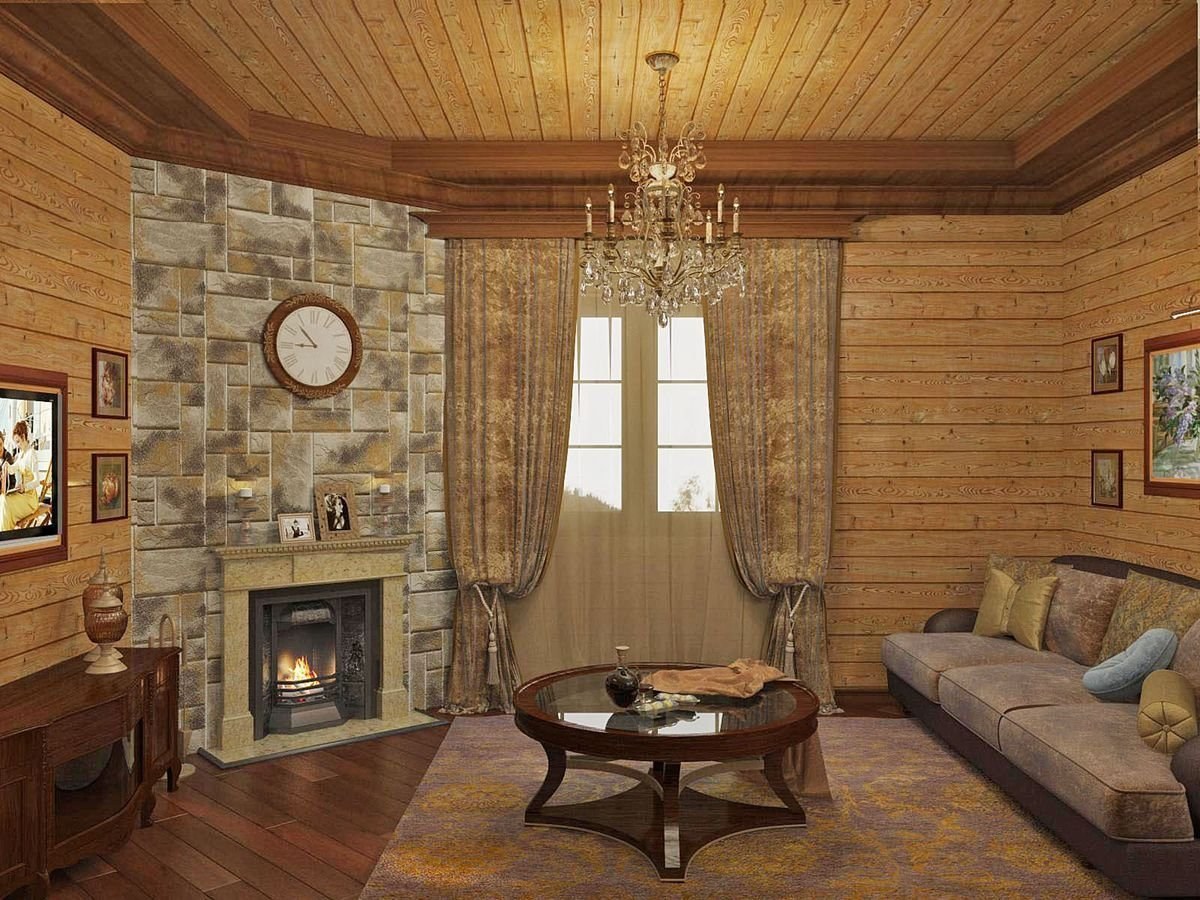 Интерьер гостиной в деревянном доме