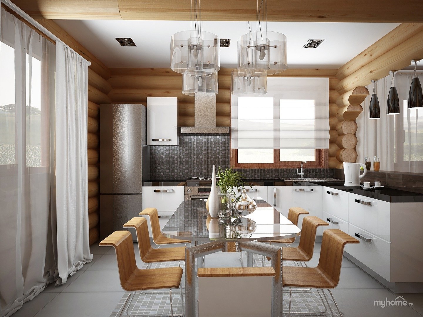 Сканди кухня в бревенчатом доме