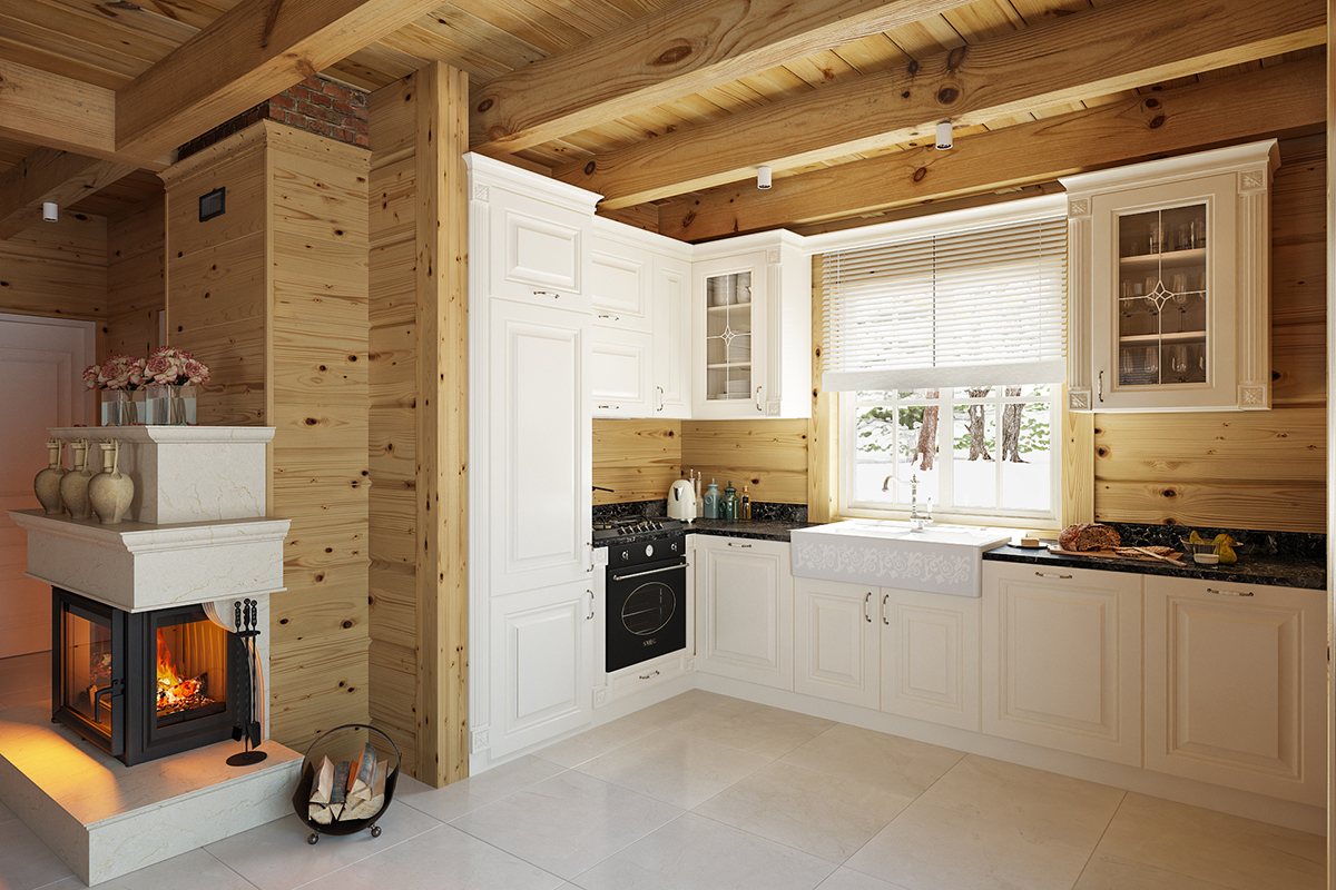 Отделка кухни в деревянном доме
