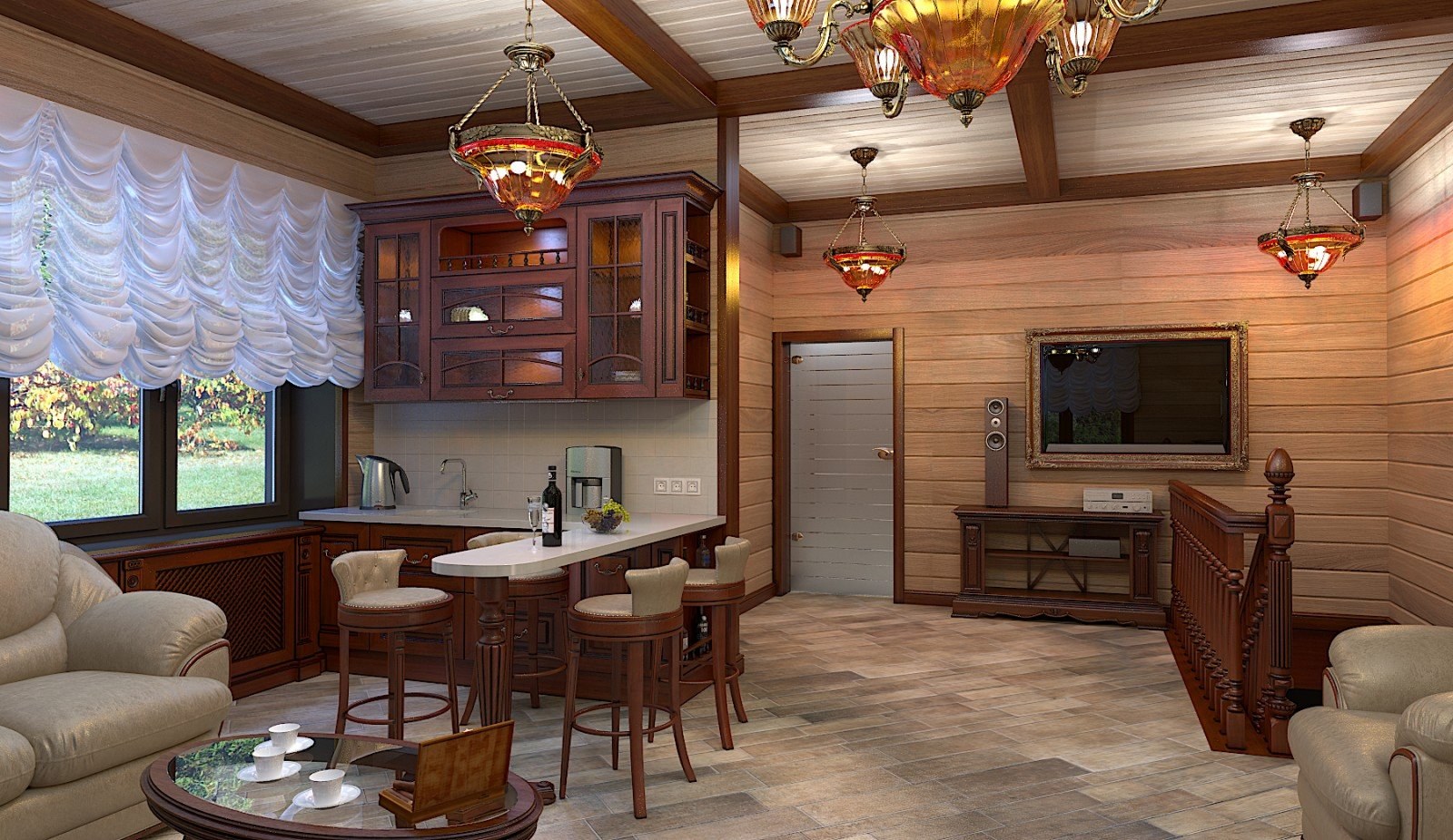 Гостиная в стиле Прованс имитация брус