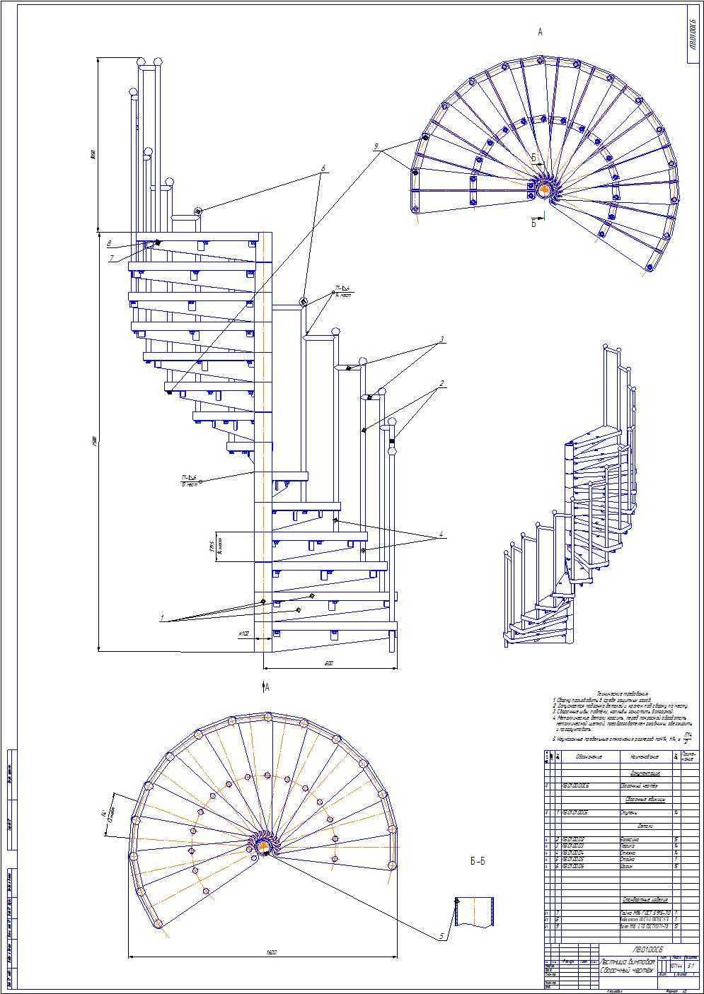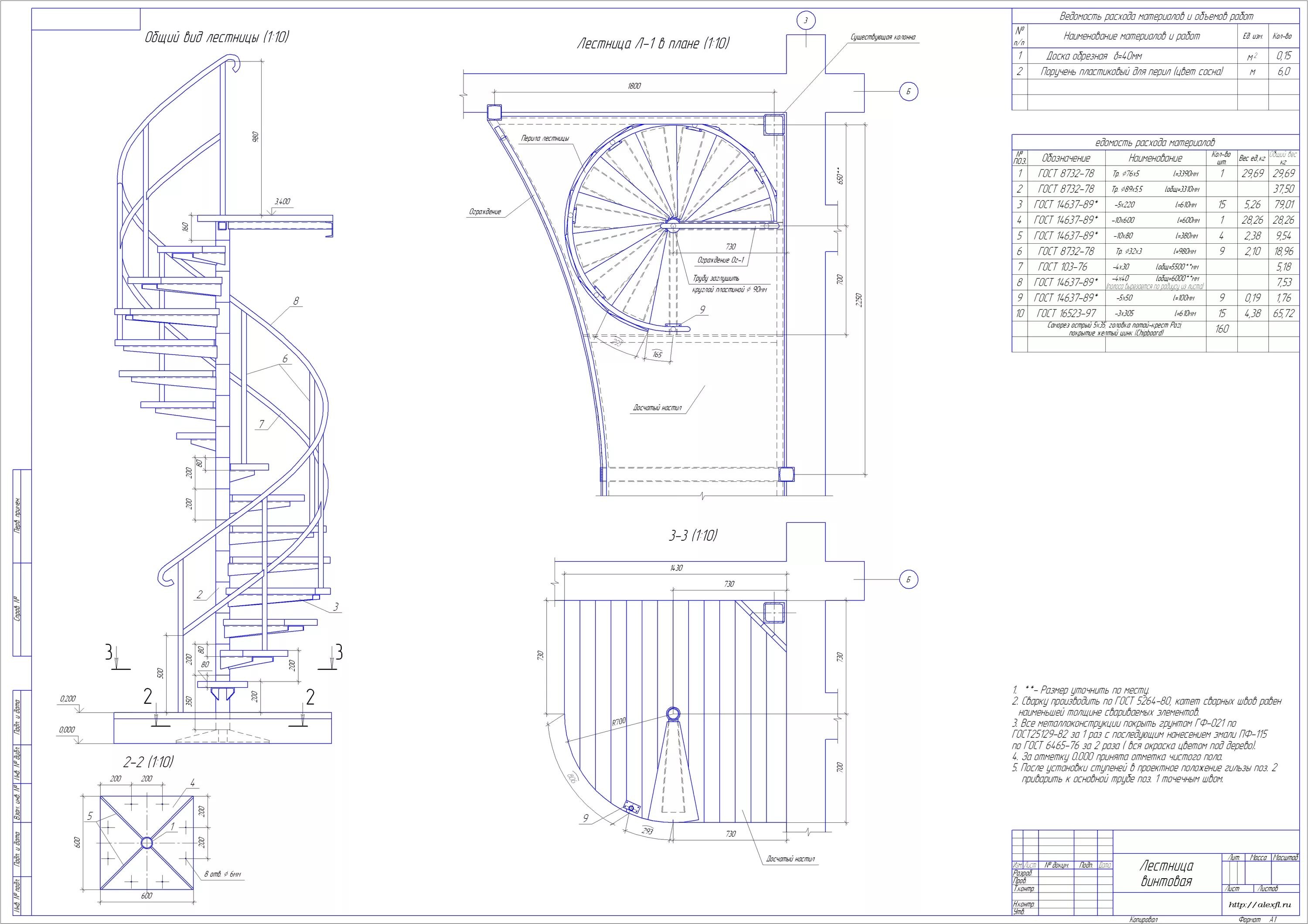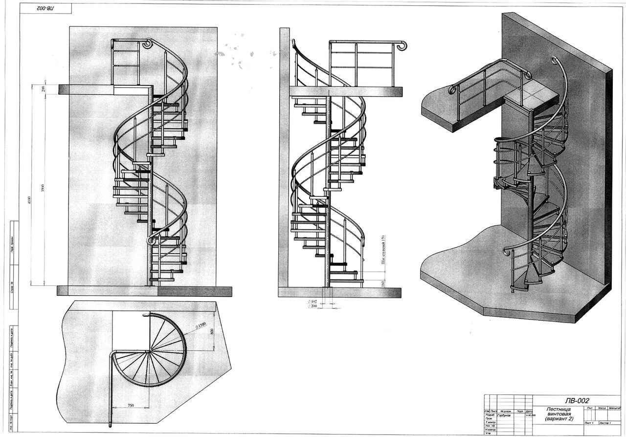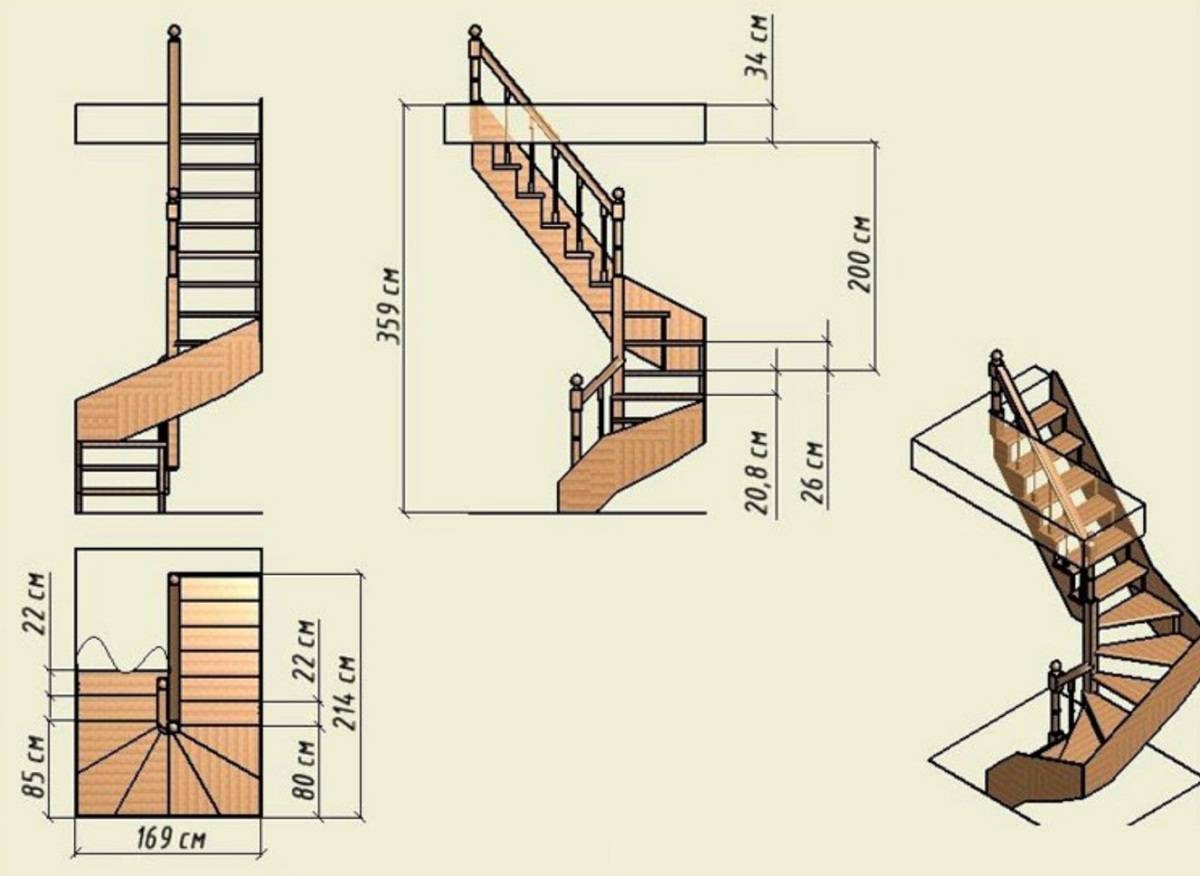 Лестницы на второй этаж с забежными ступенями на 180 чертеж