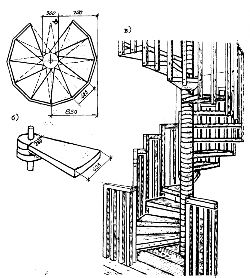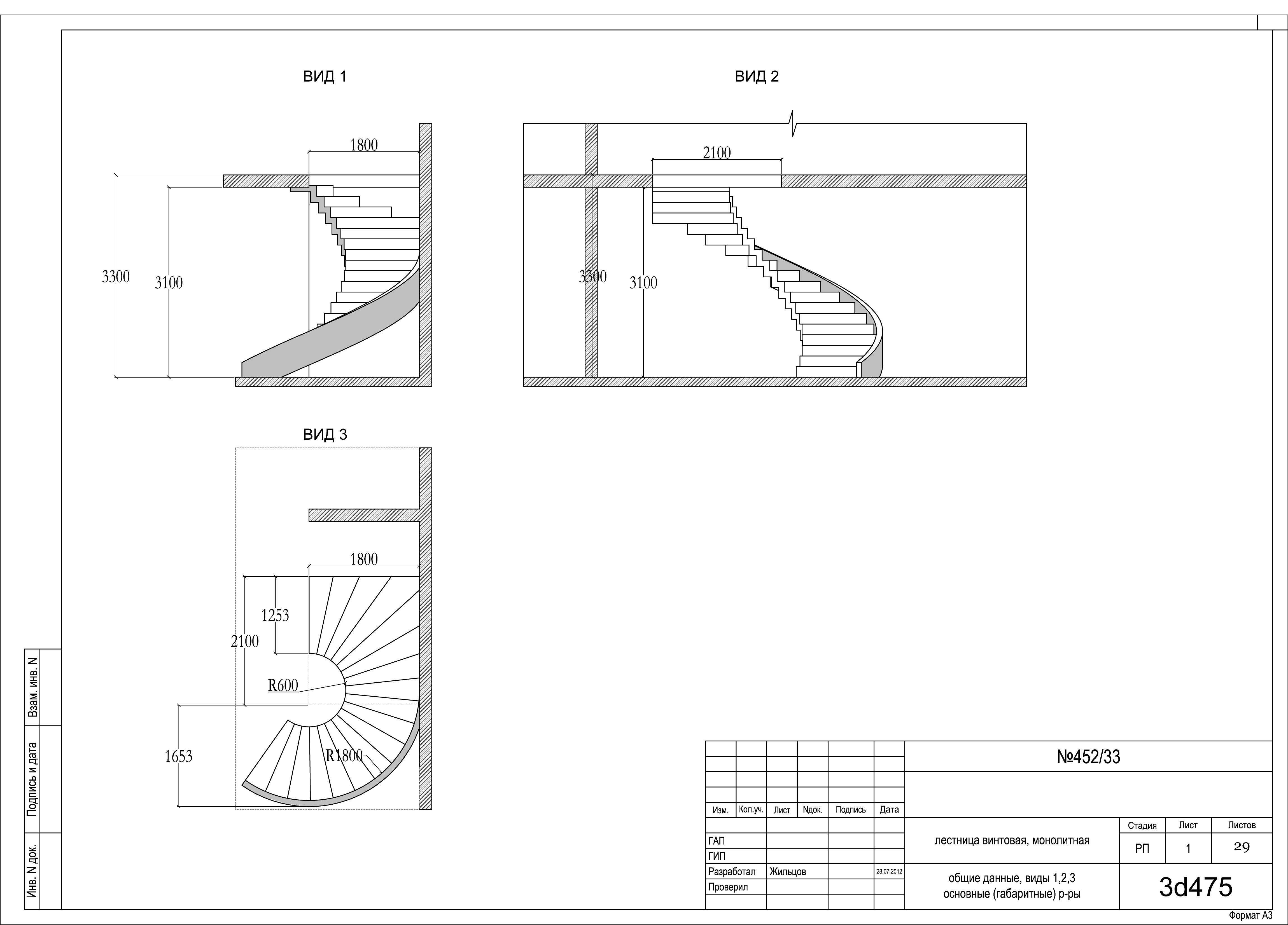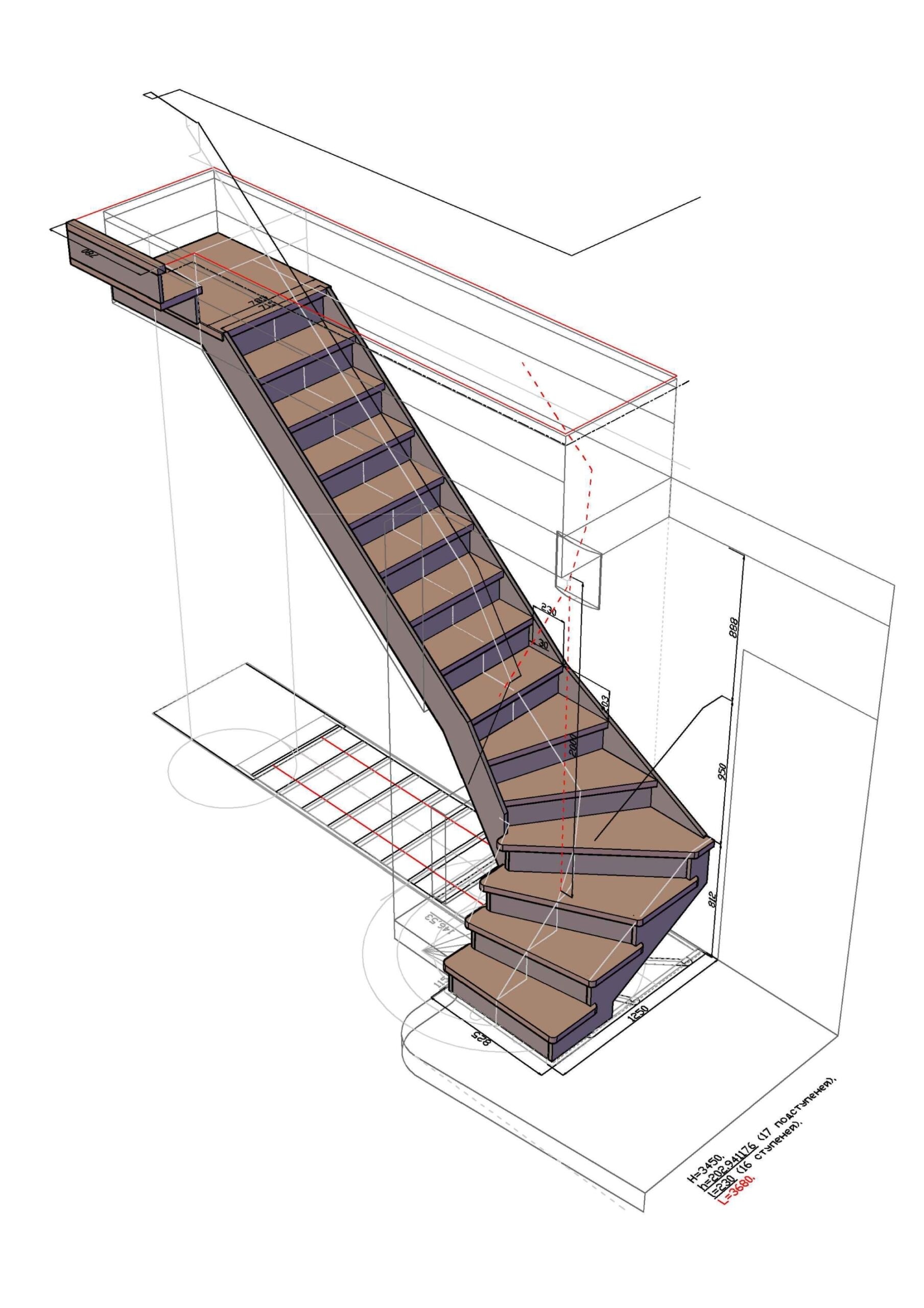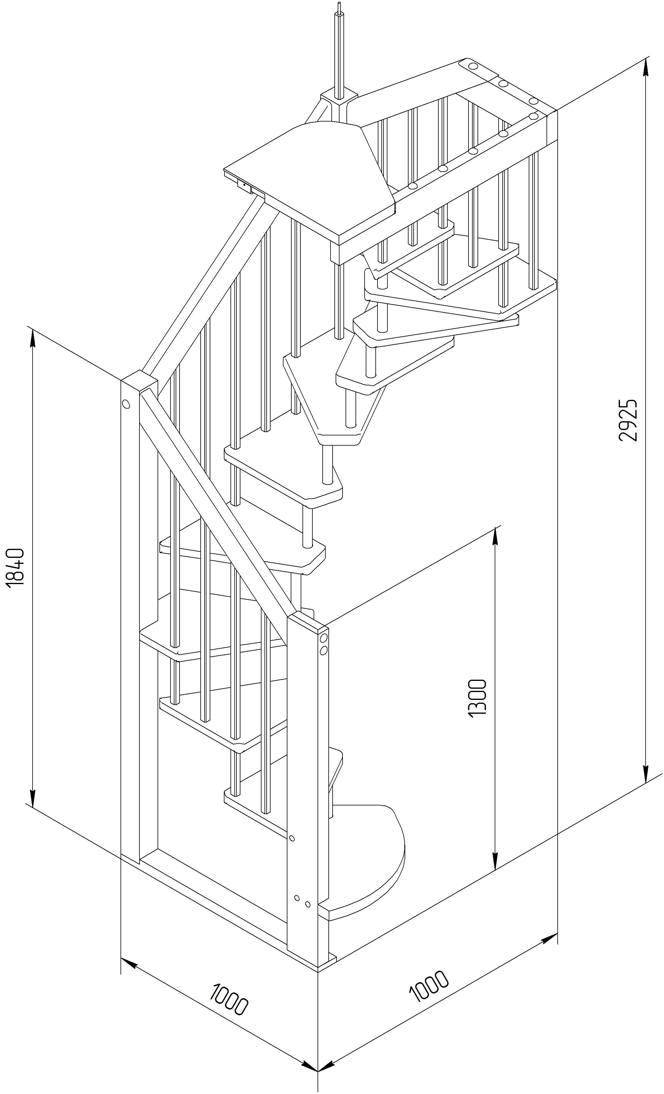 Лестницы на второй этаж с забежными ступенями на 180 чертеж