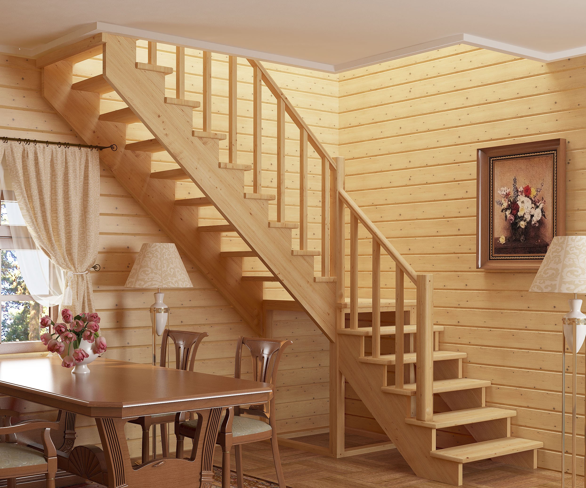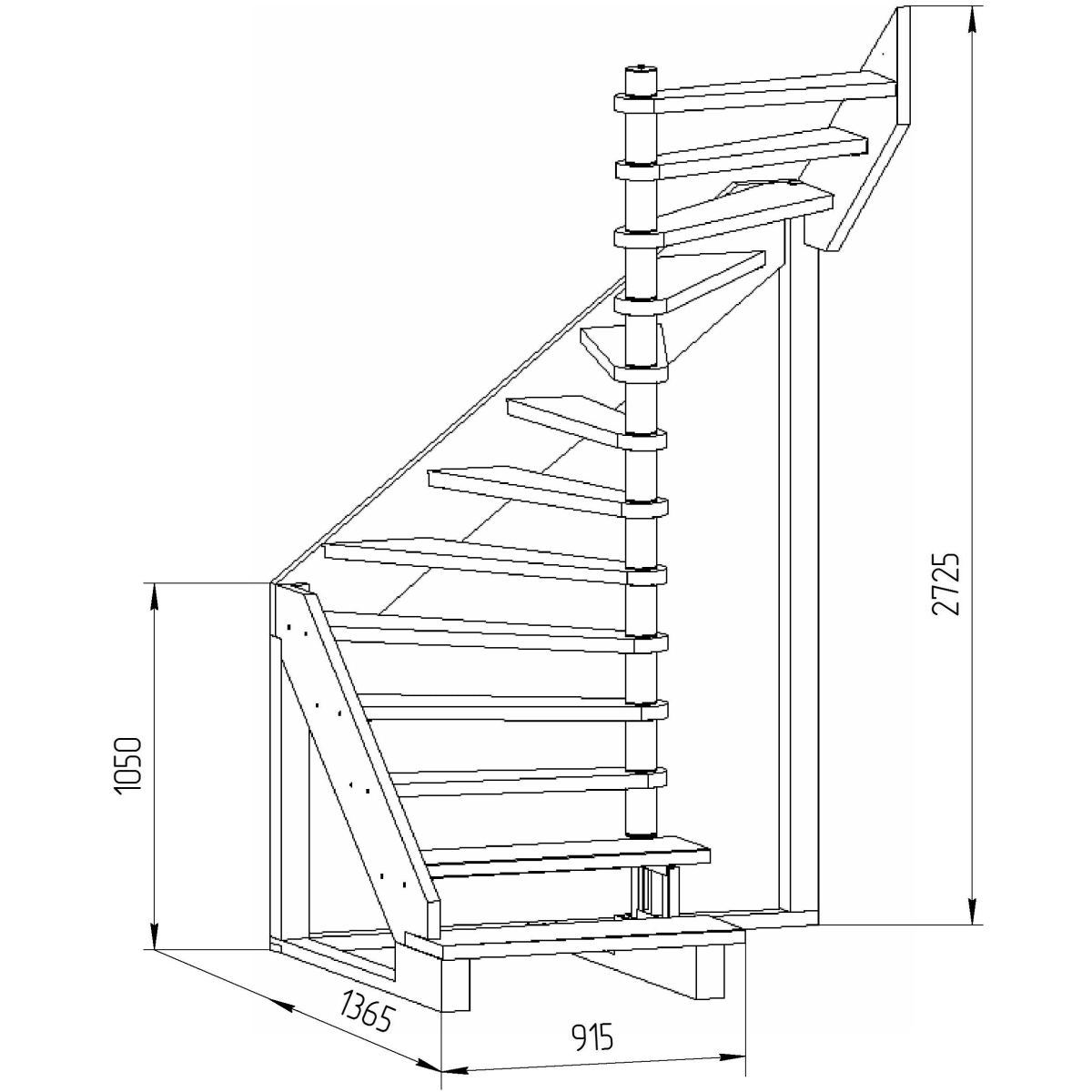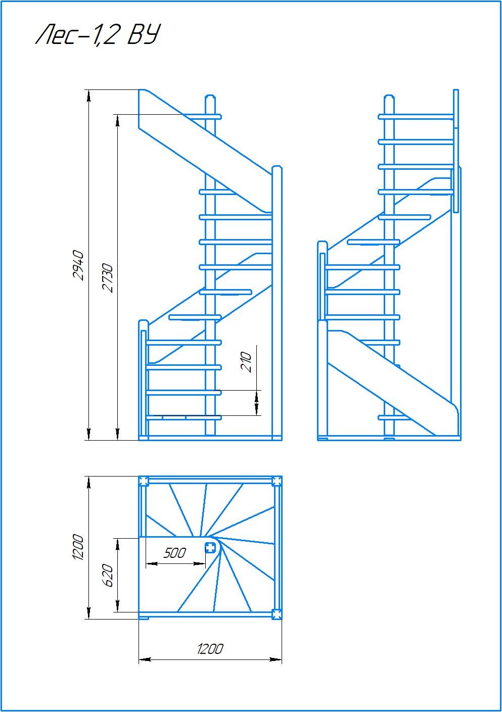 Деревянная межэтажная лестница лес-1,2 ву (поворот 360°)