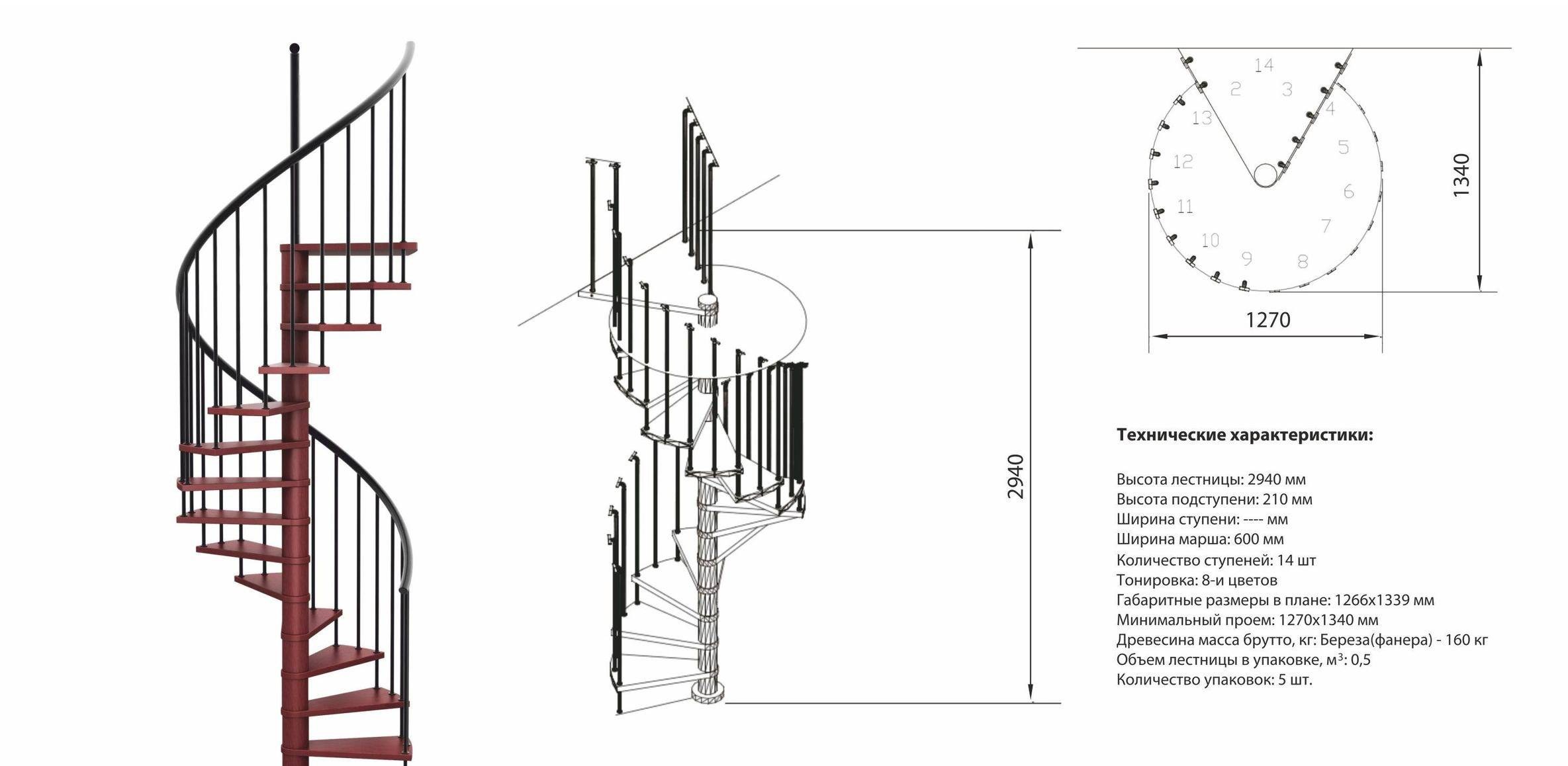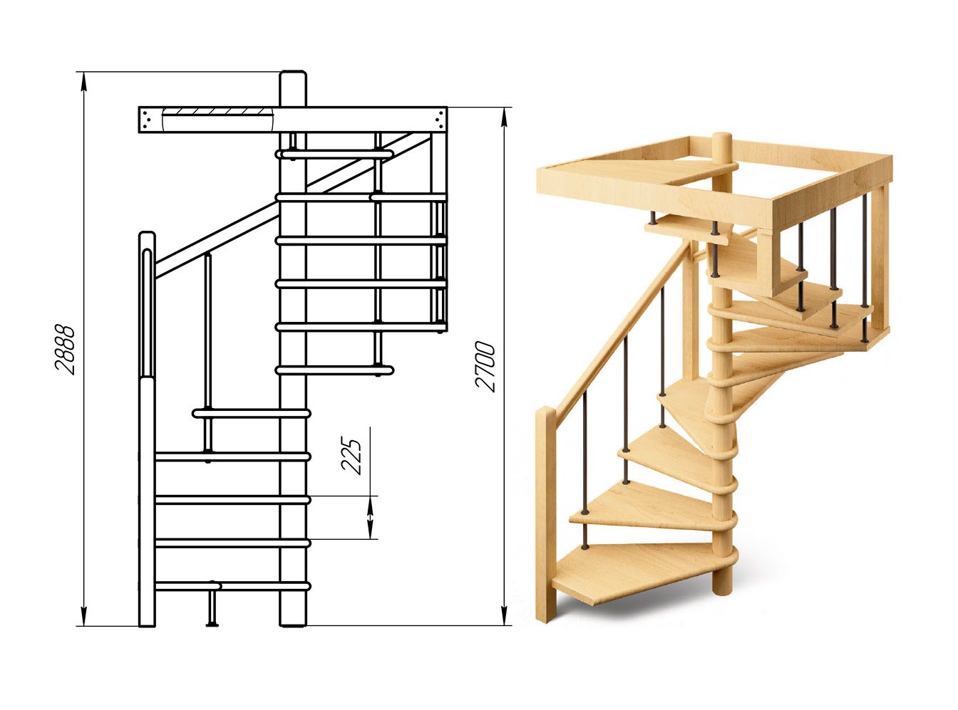 Винтовая деревянная лестница ДЛС-034 С металлом