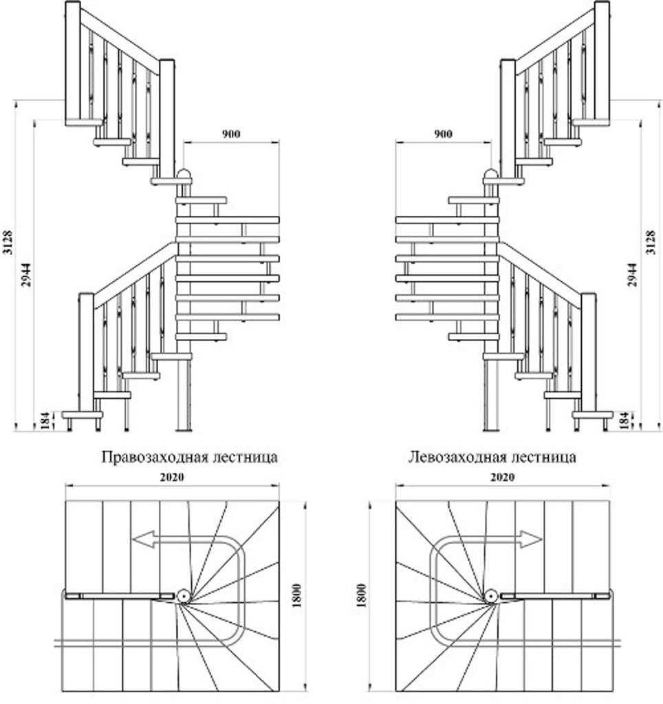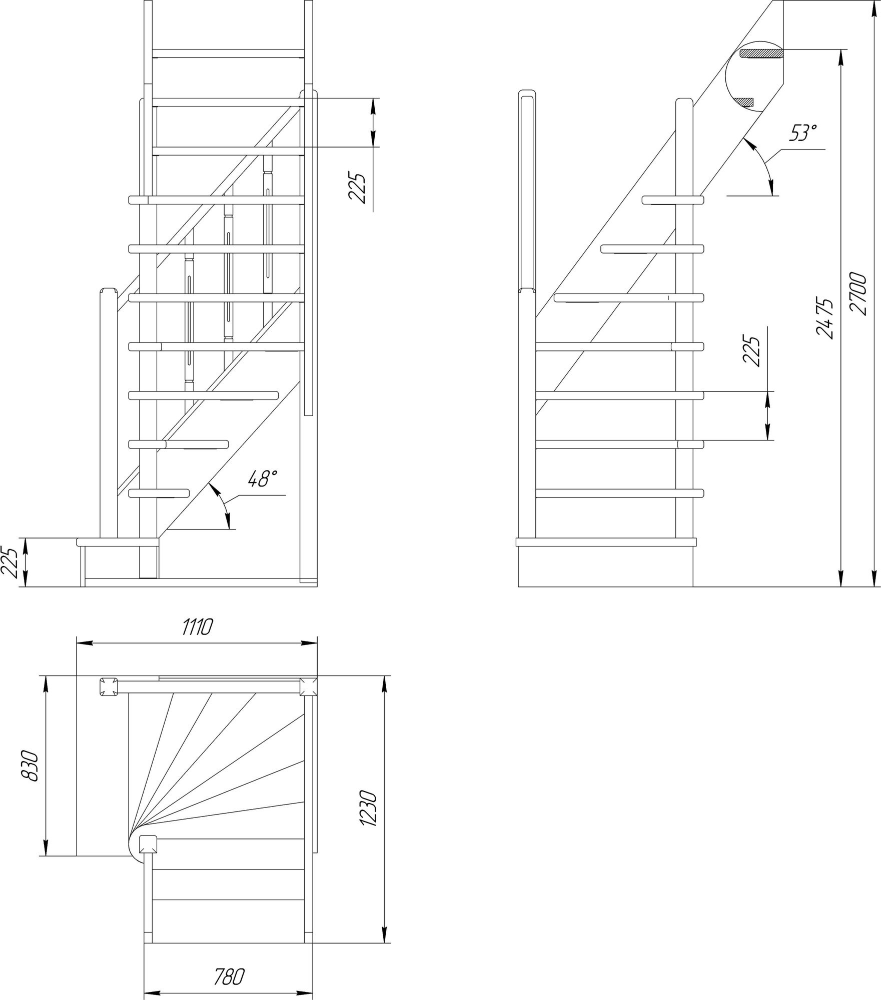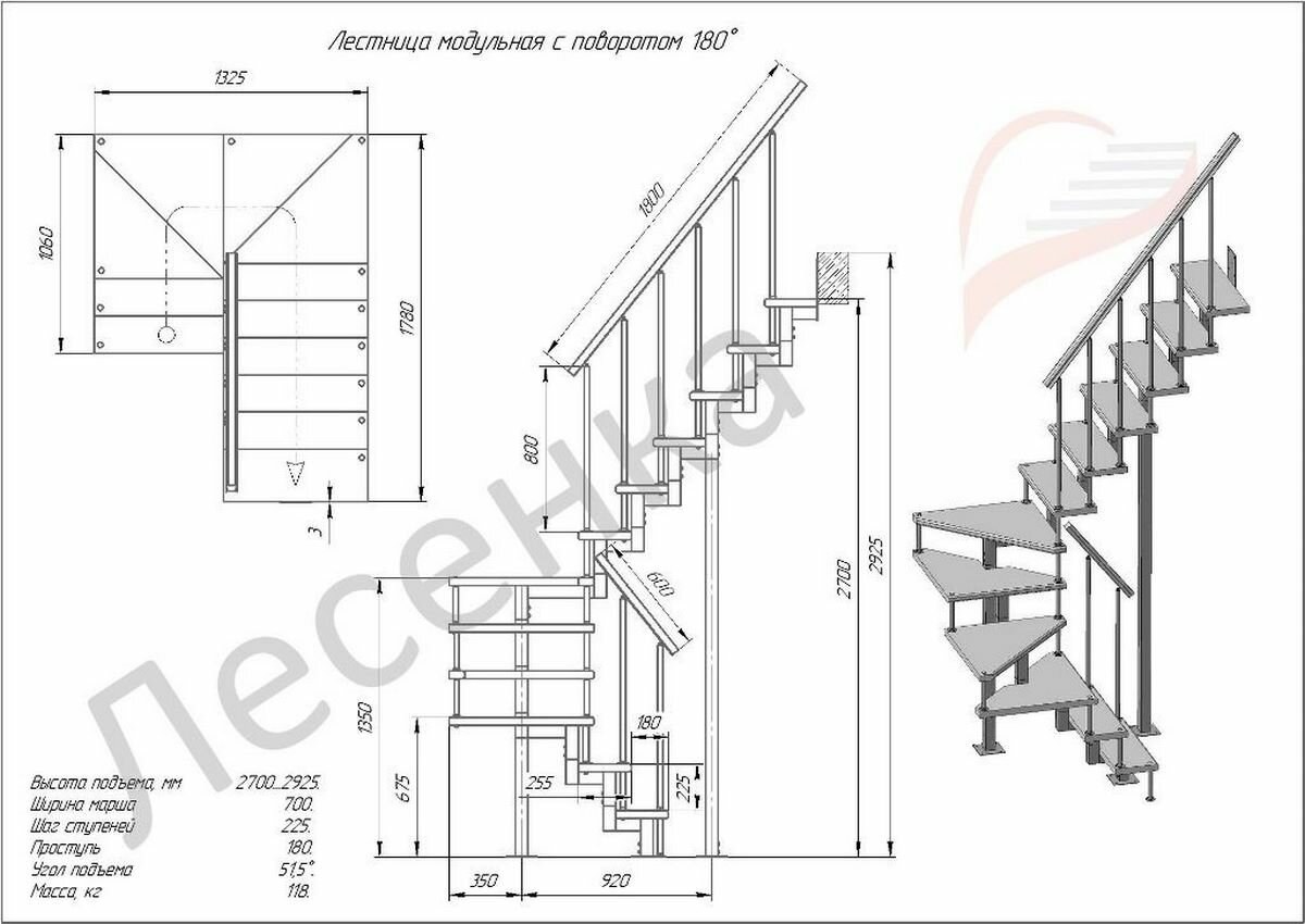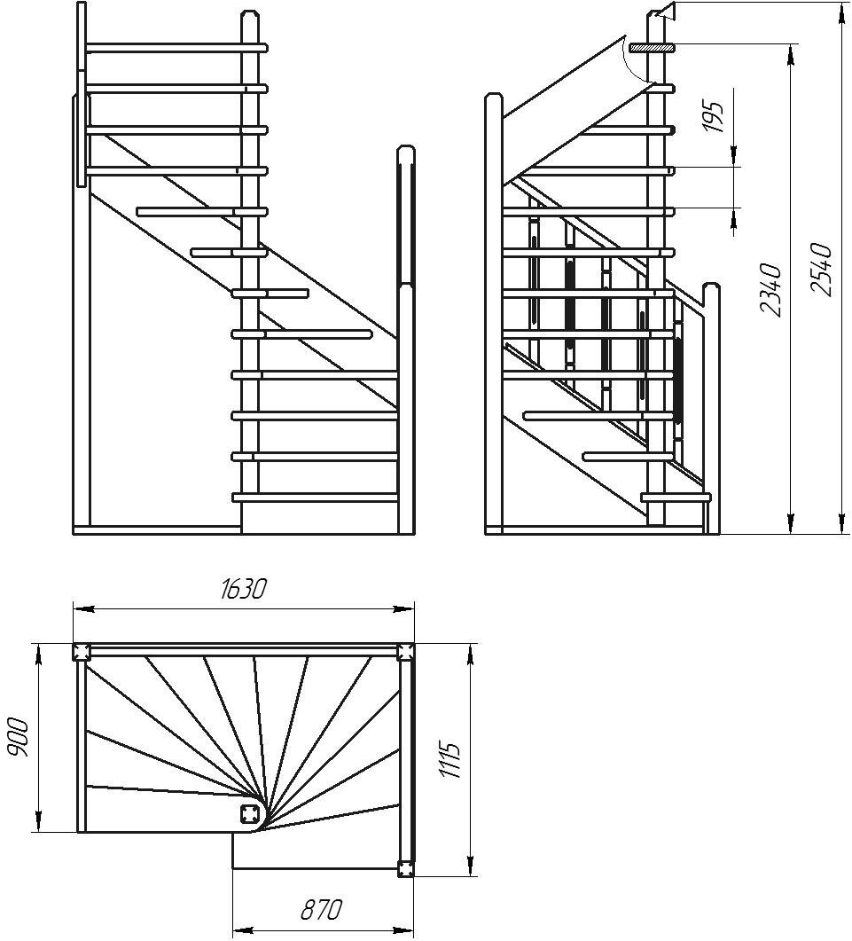 Лестница поворотная на 180 лс-01у универсальная чертеж