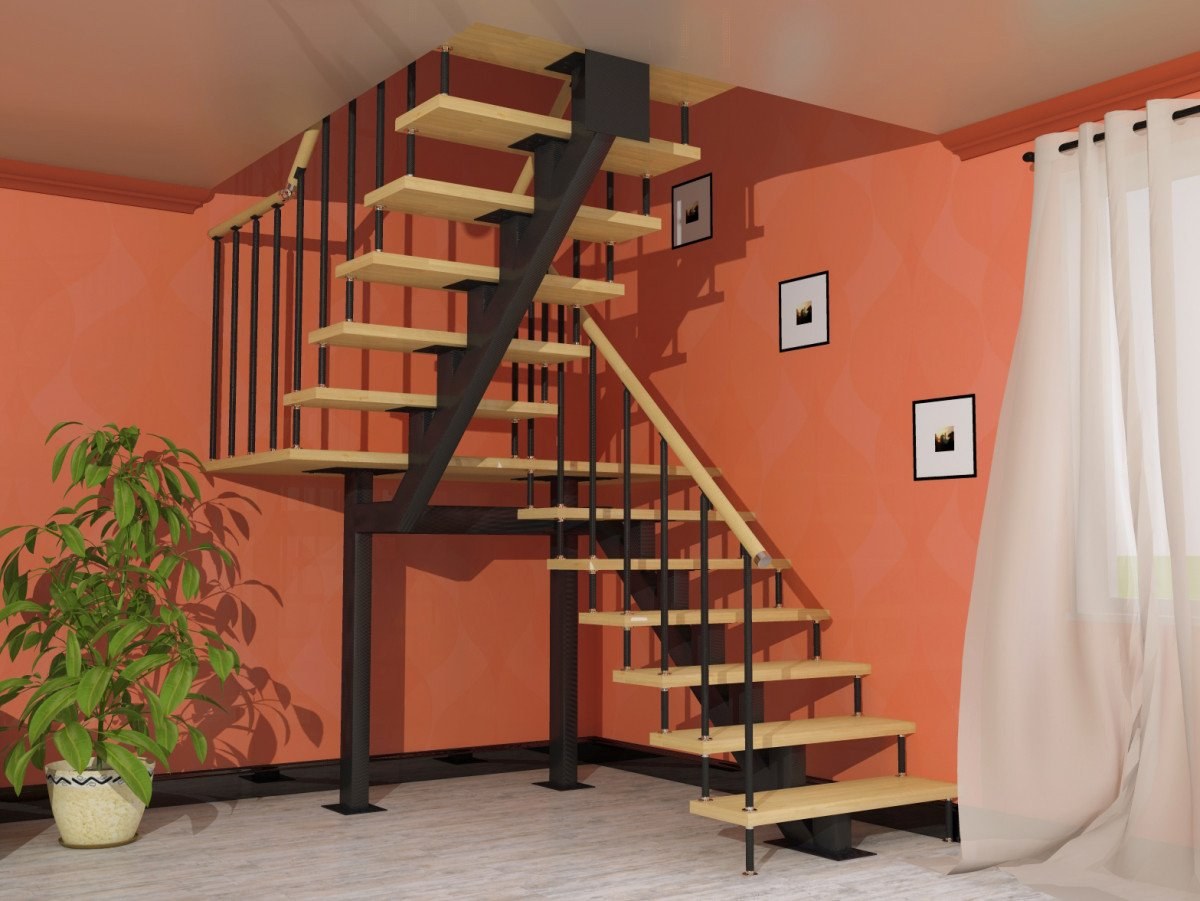 Модульная лестница компакт Квадро с поворотом 90 градусов