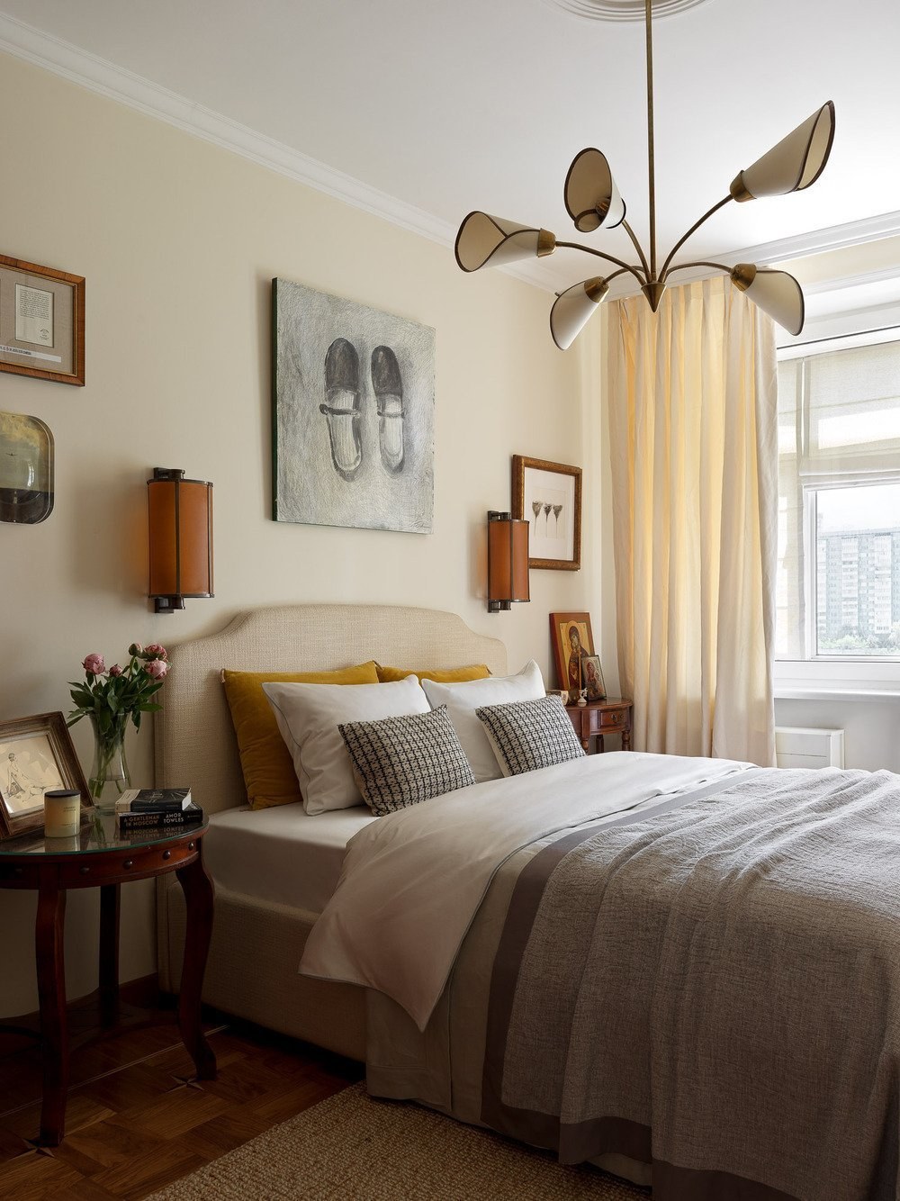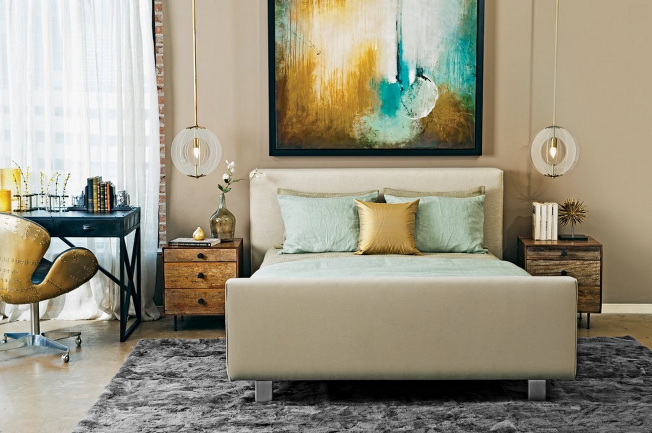 Бежевая спальня с яркими акцентами