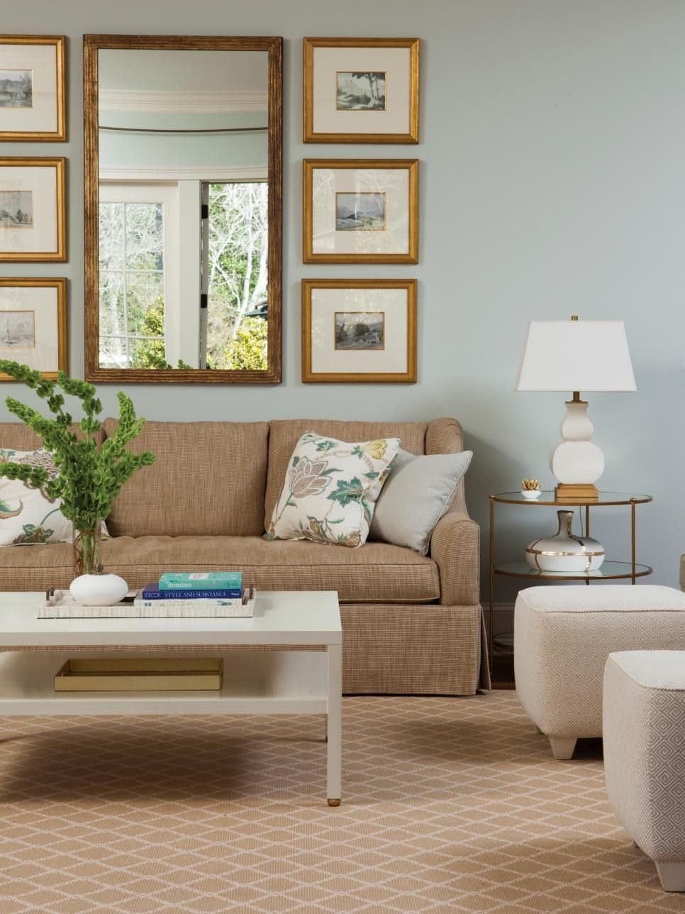 Гостиная в бежево голубых тонах