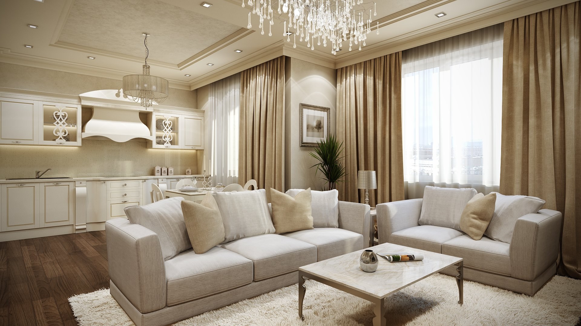 Гостиная в светло бежевых тонах