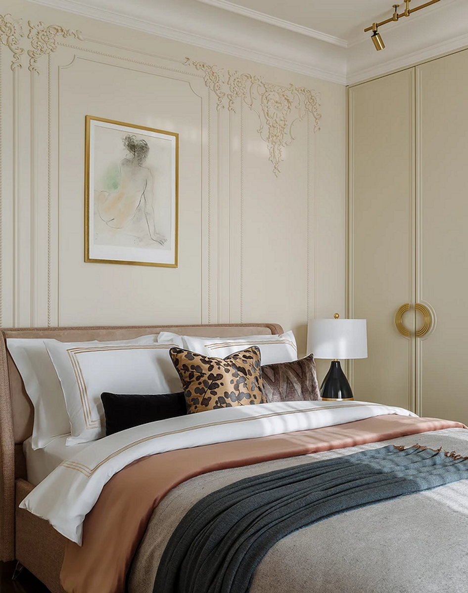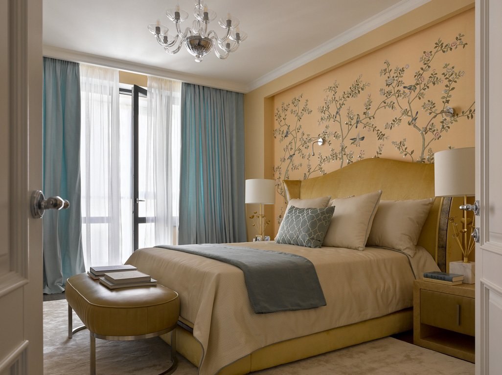 Бежевые стены в спальне