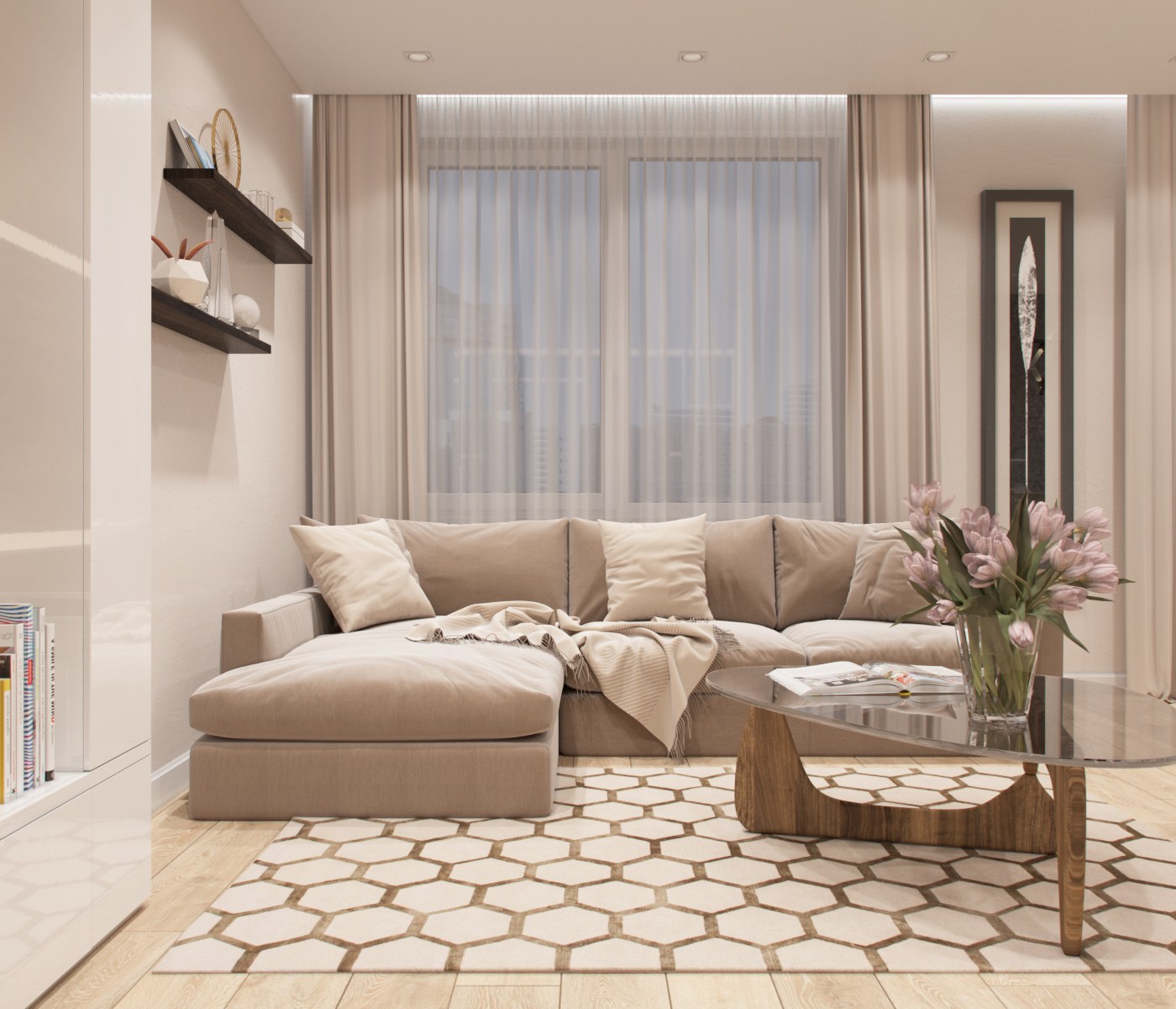Гостиная в бежевых тонах