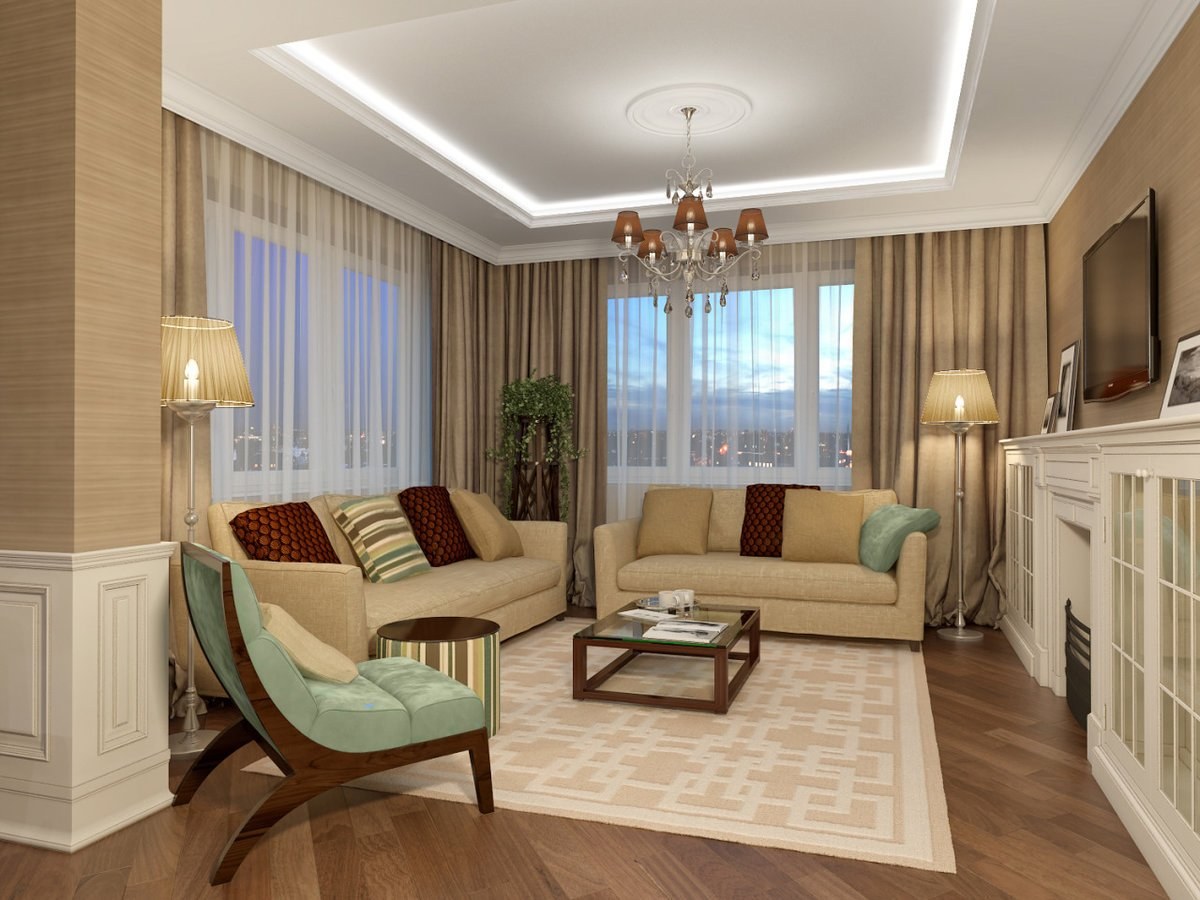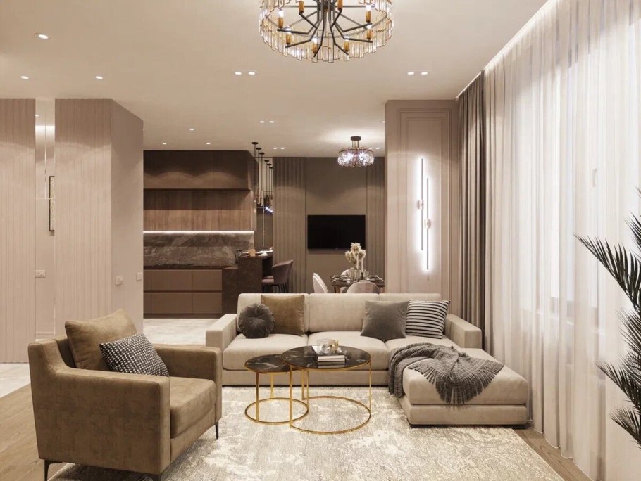 Бежевый цвет в интерьере гостиной
