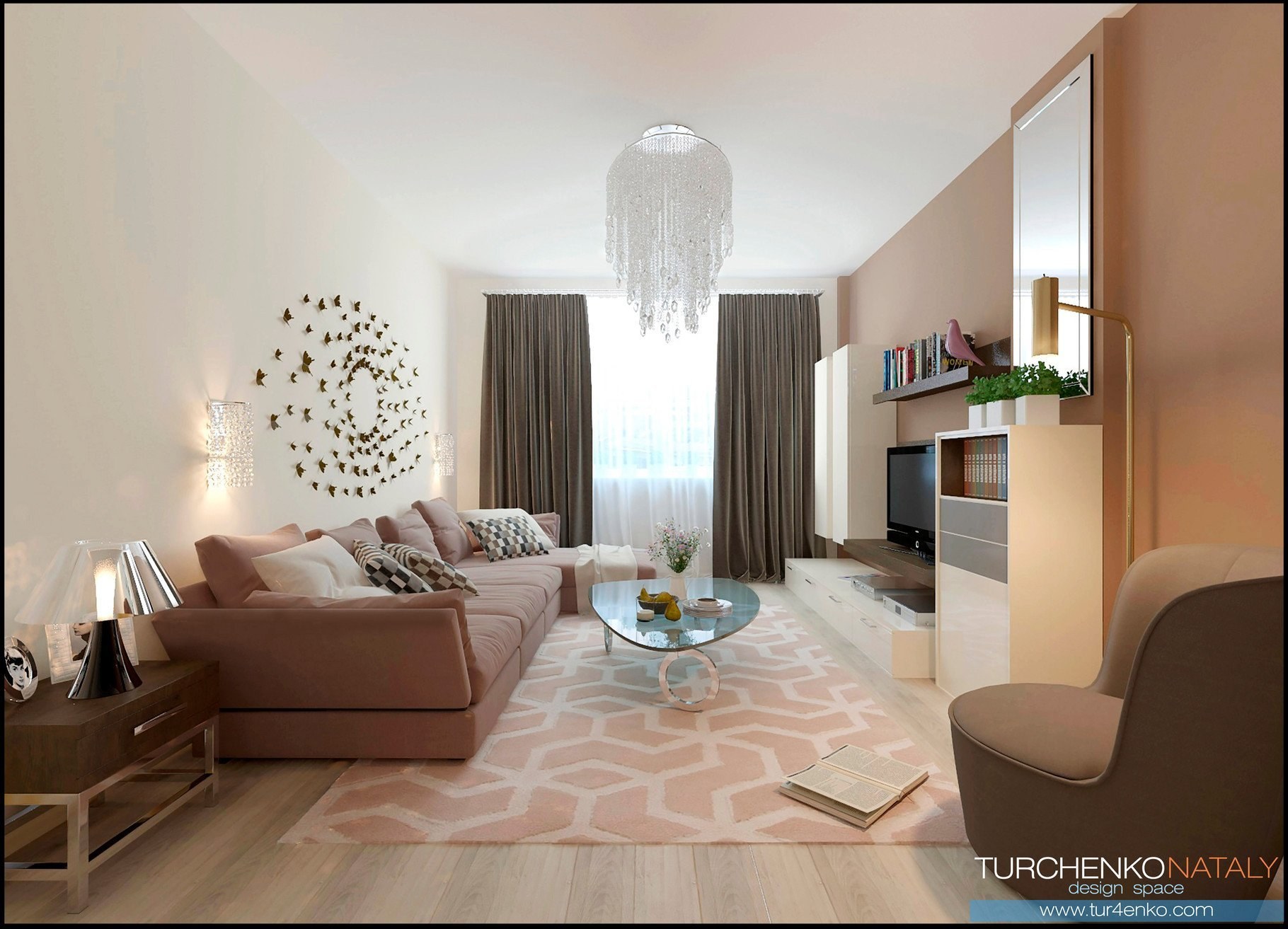 Персиковый цвет в интерьере гостиной