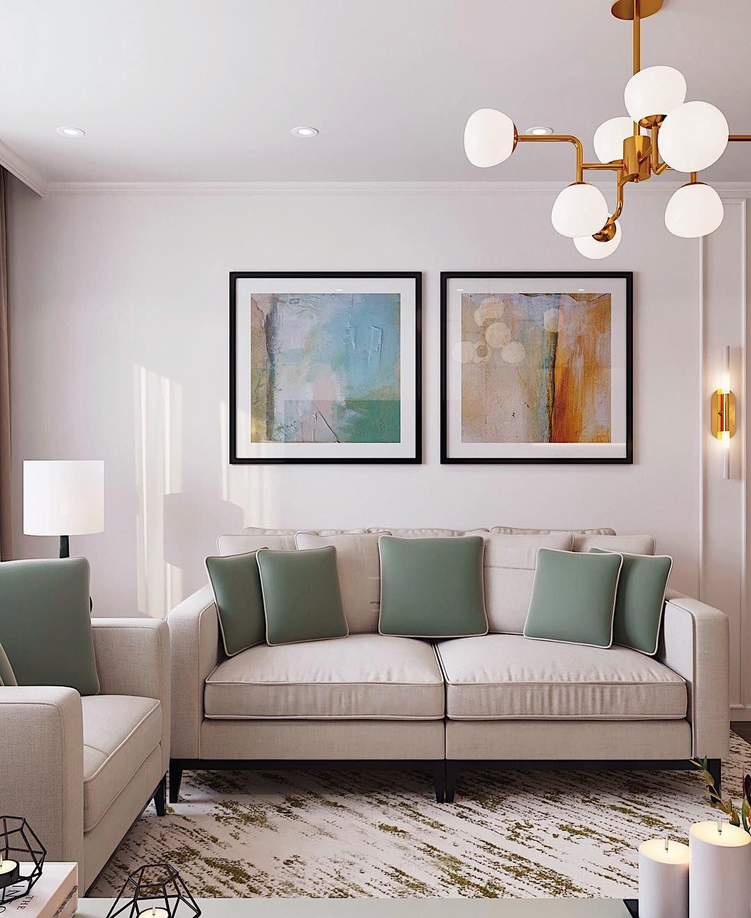 Картины в интерьере гостиной над диваном