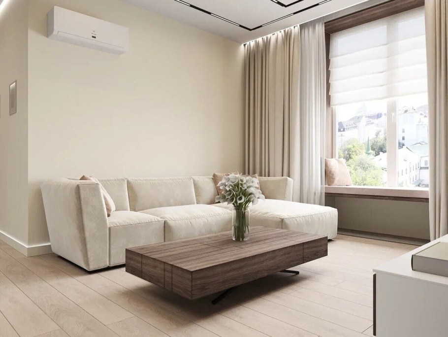 Гостиная в бежевых тонах в современном стиле