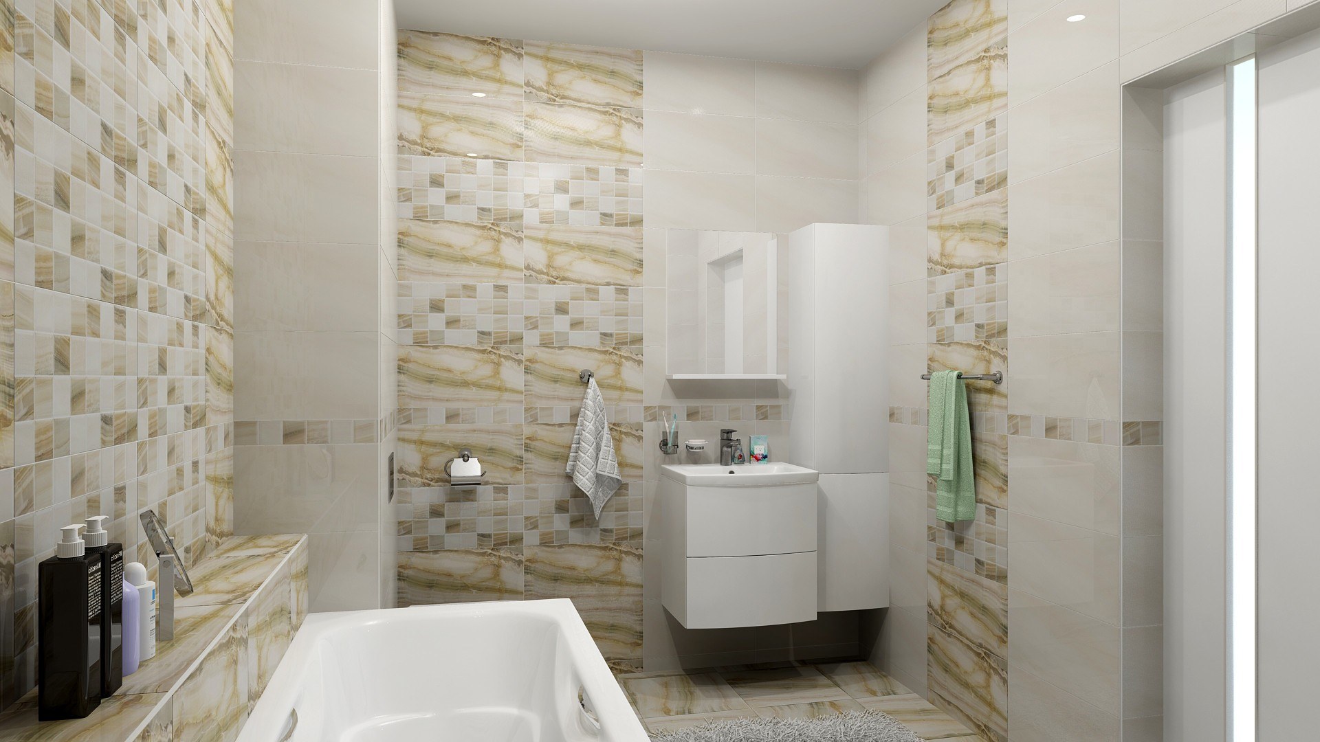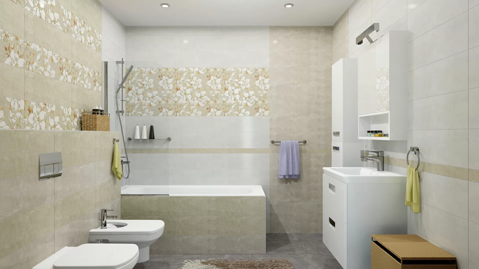 Плитка настенная Астерия 60х30 (BL-АСТ/300/600/сб) светло-бежевый в интерьере