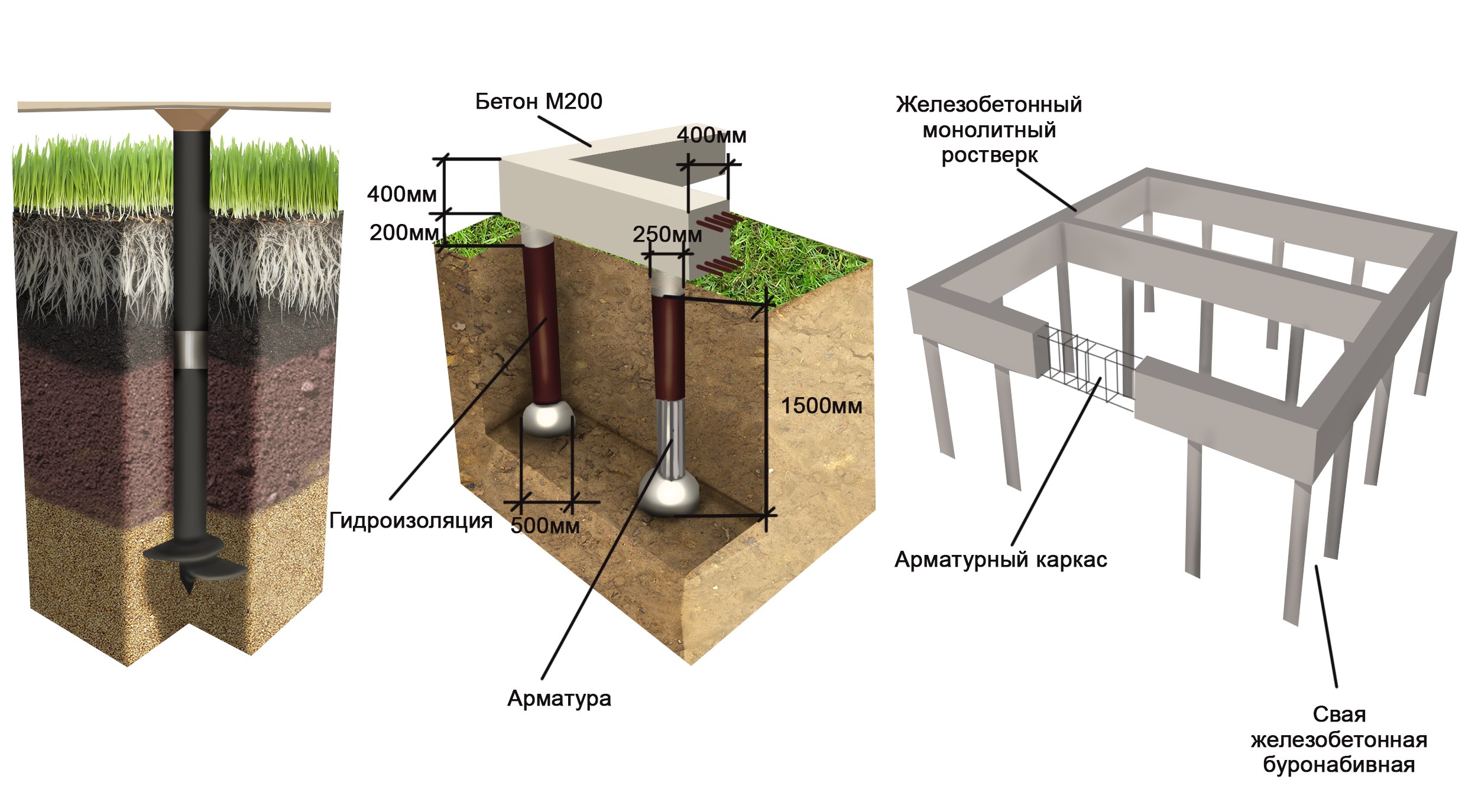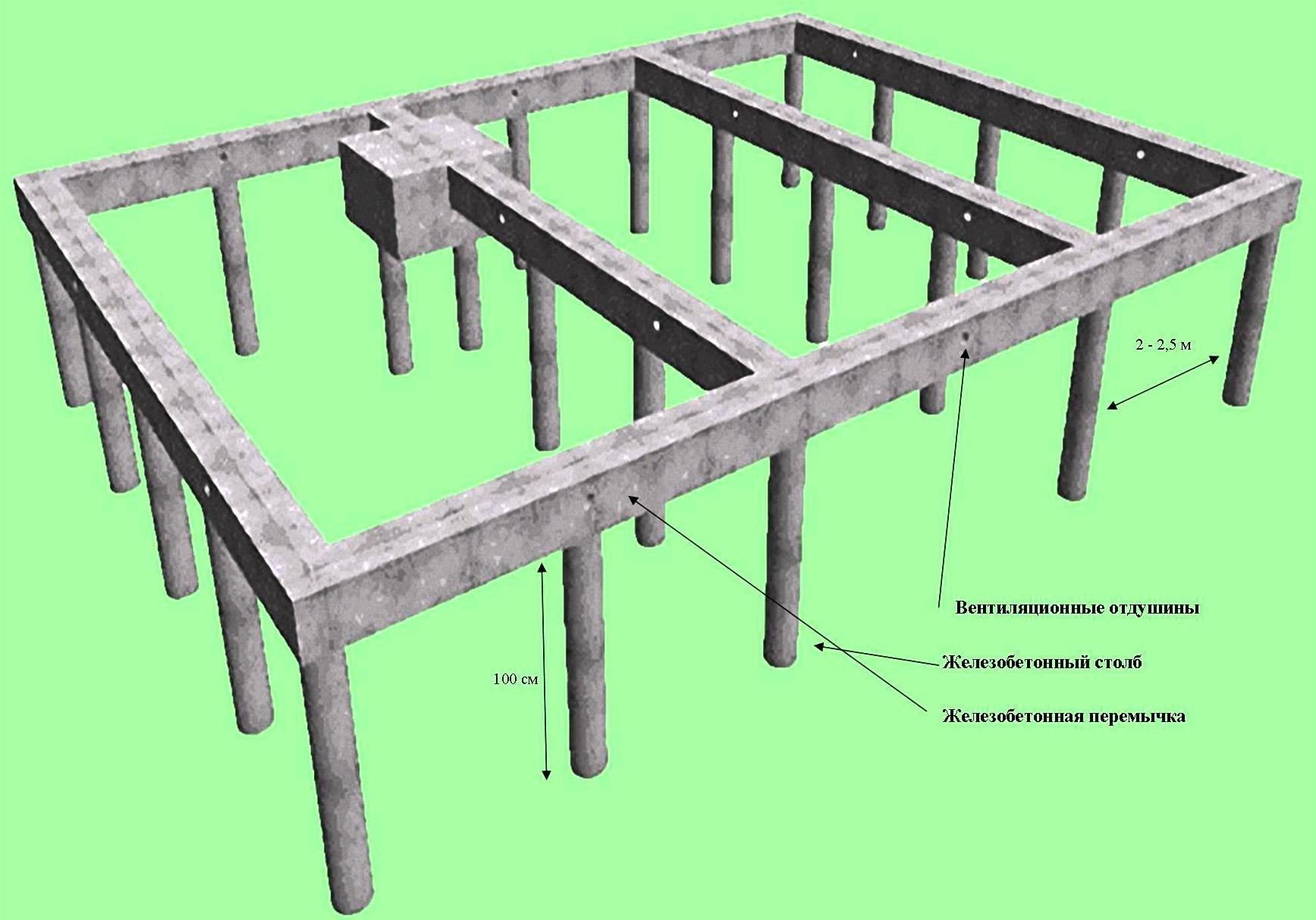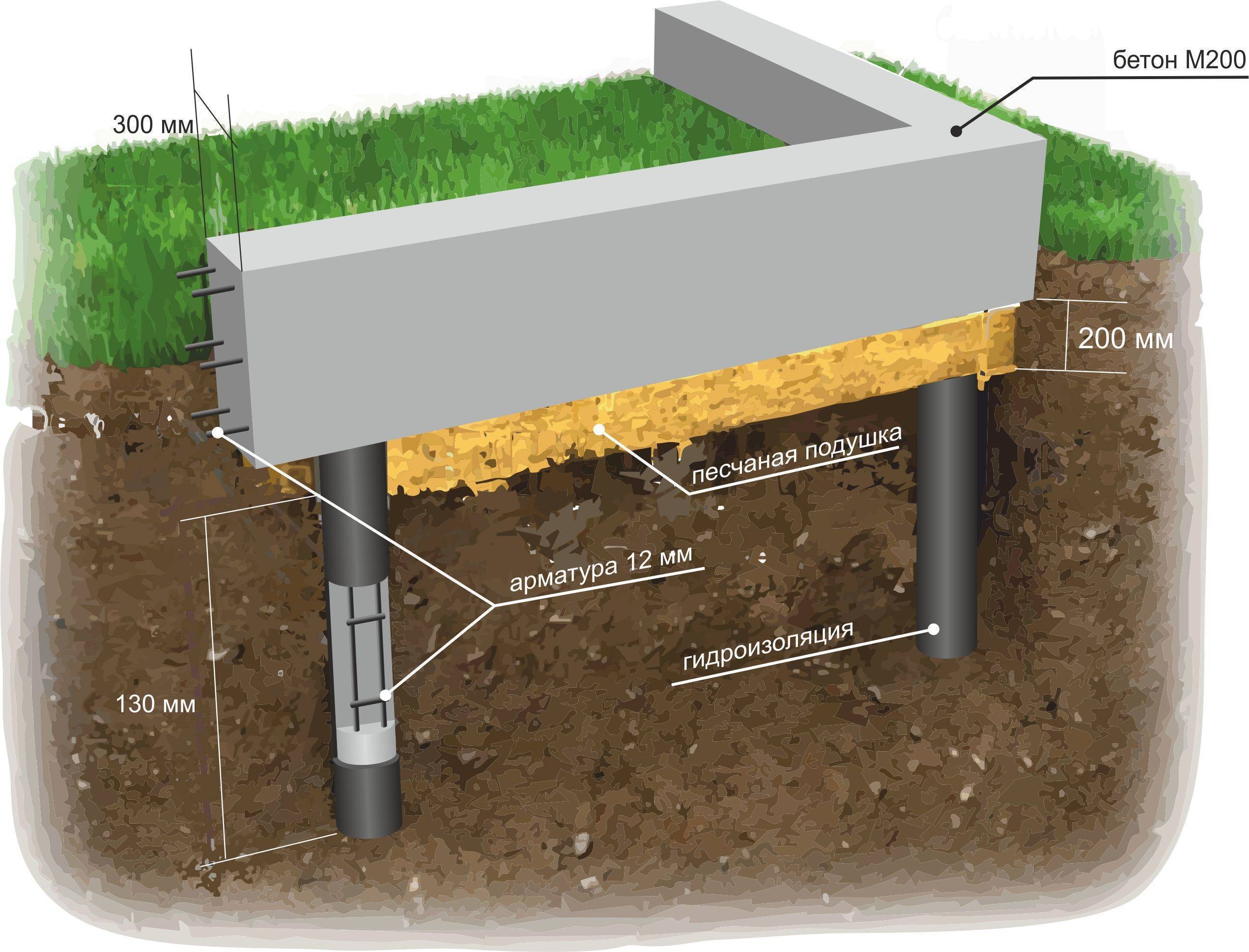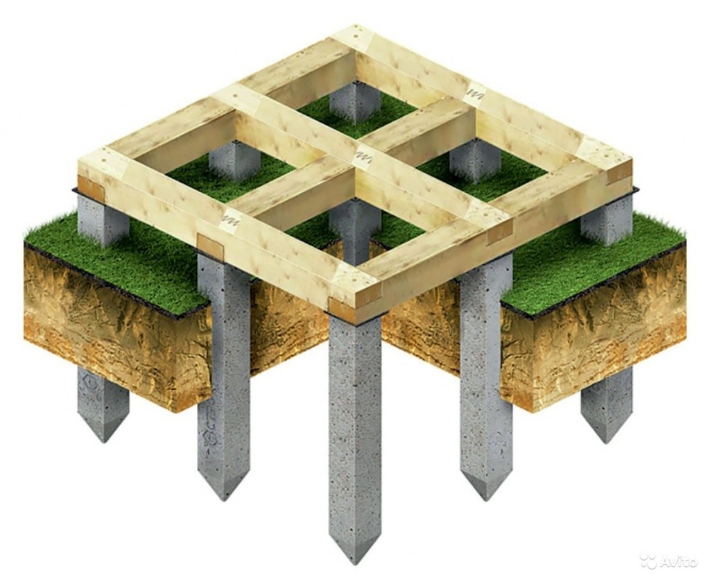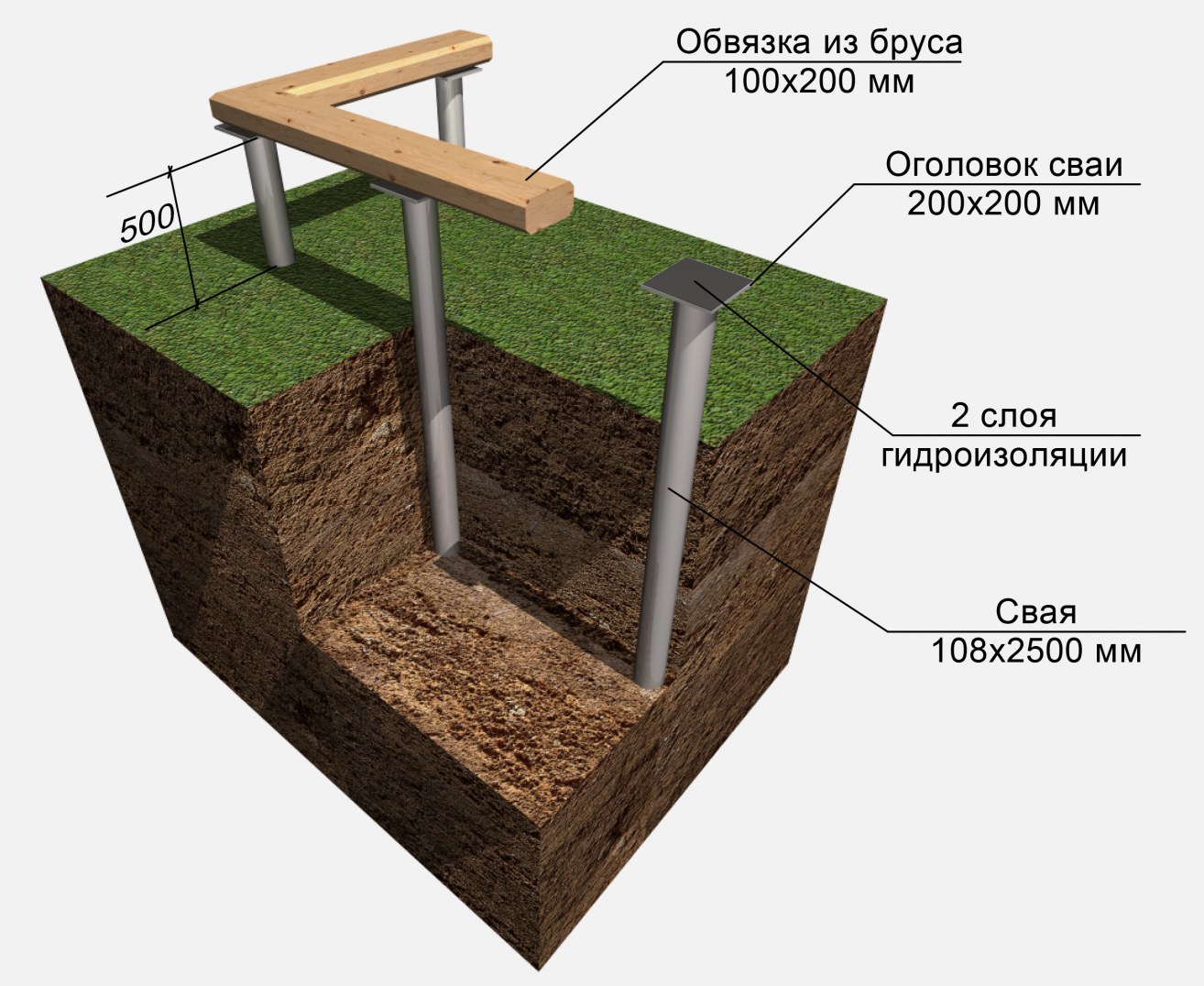Фундаментсвайный 2,5 м с ростверком из трубы профилированной 80х120 мм