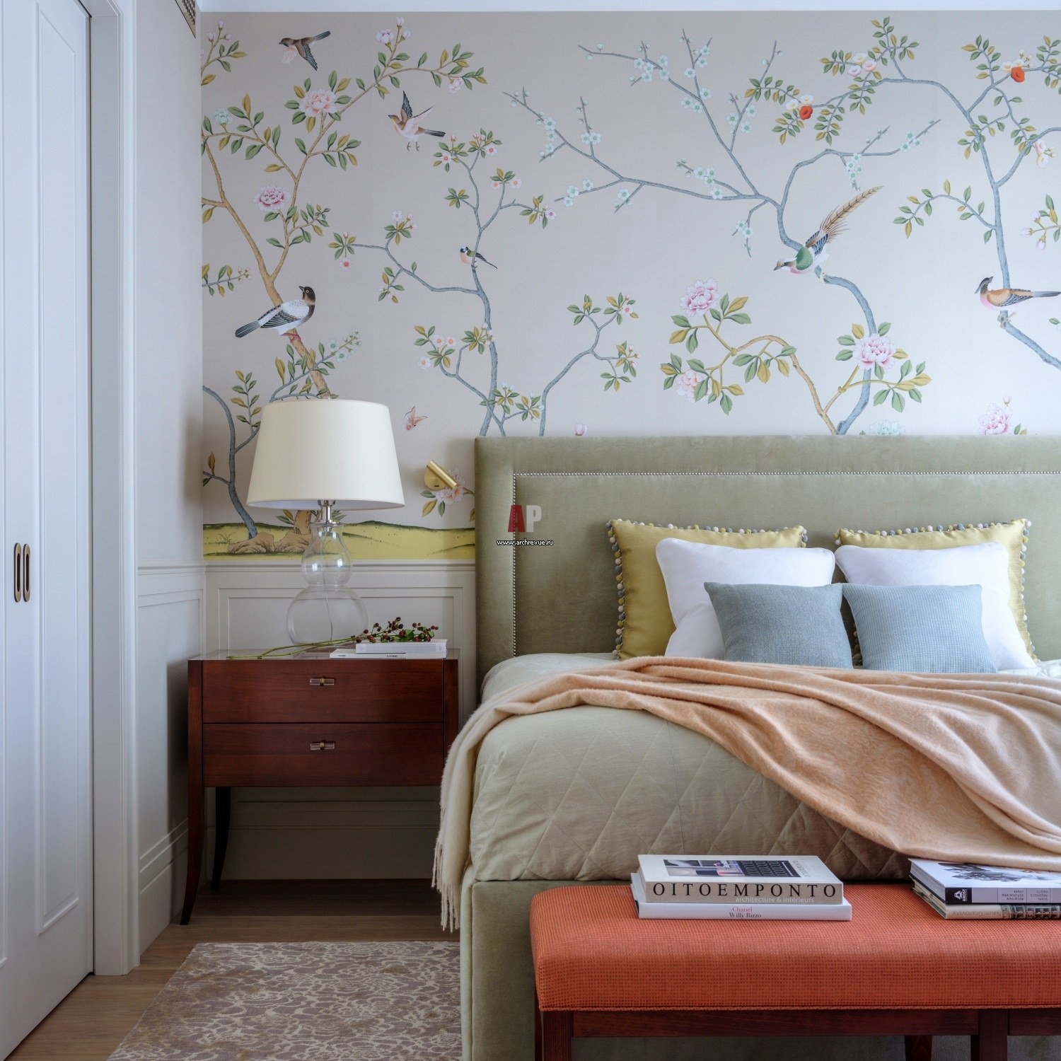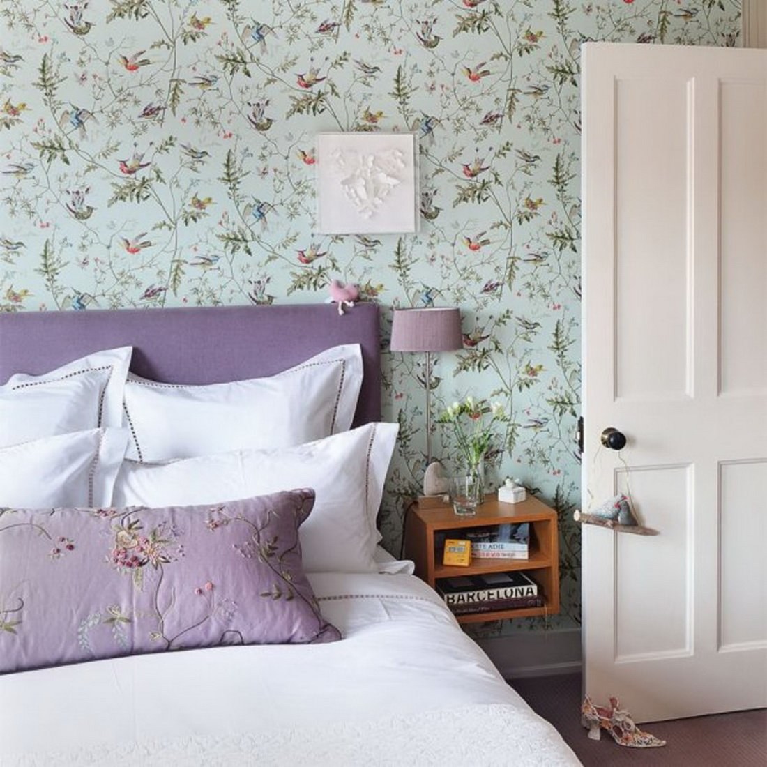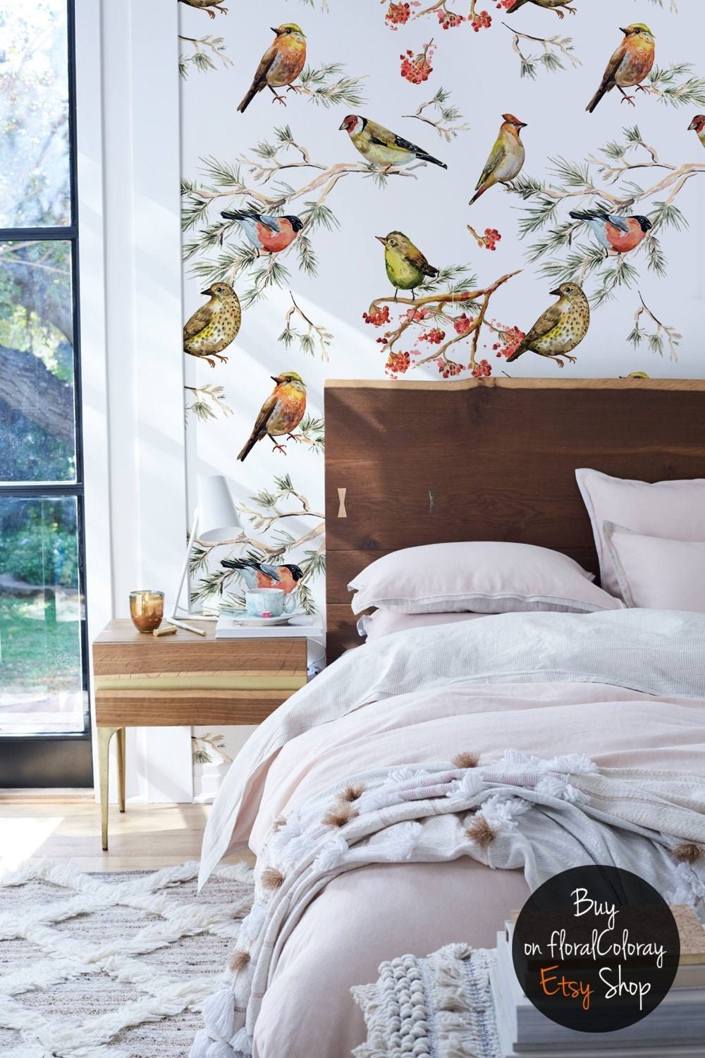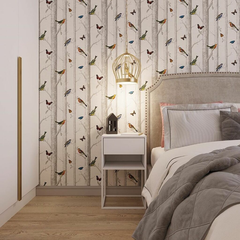 Обои с птичками в интерьере спальни с чем сочетаются (94 фото)