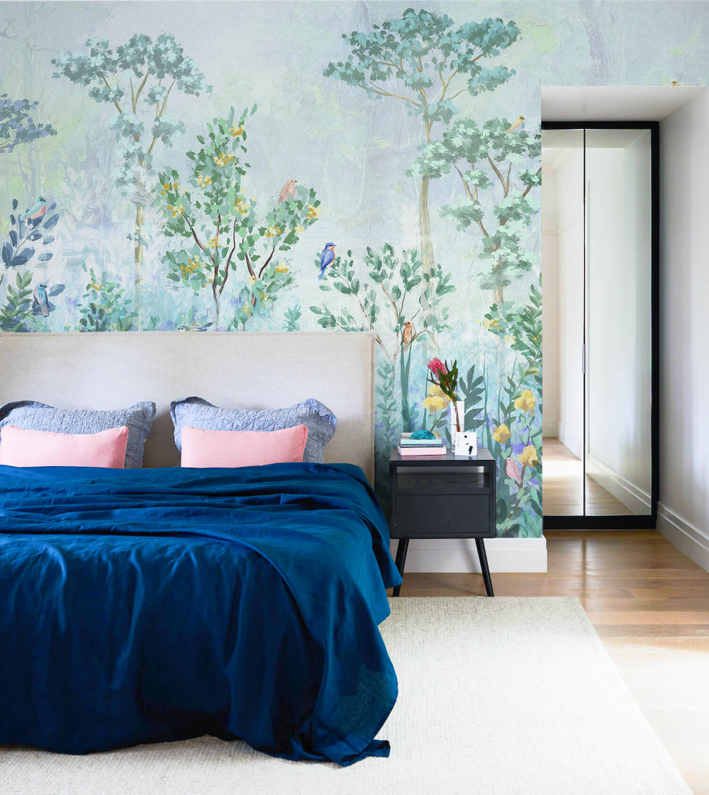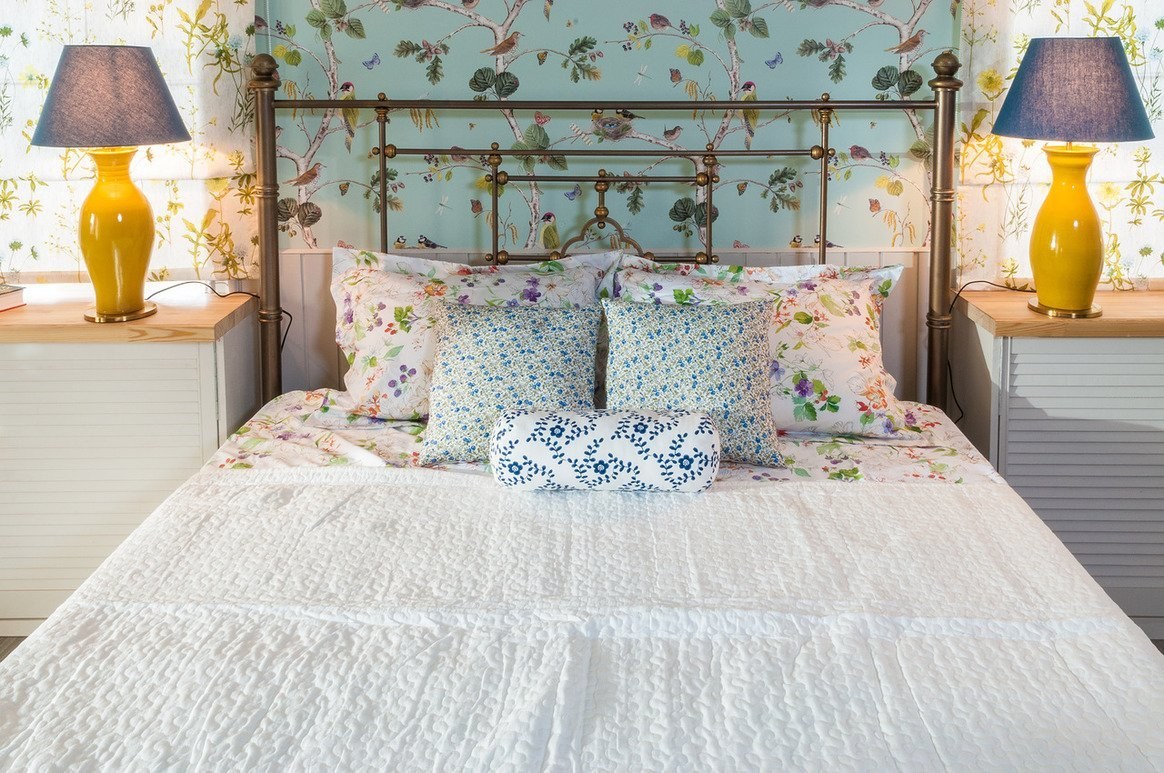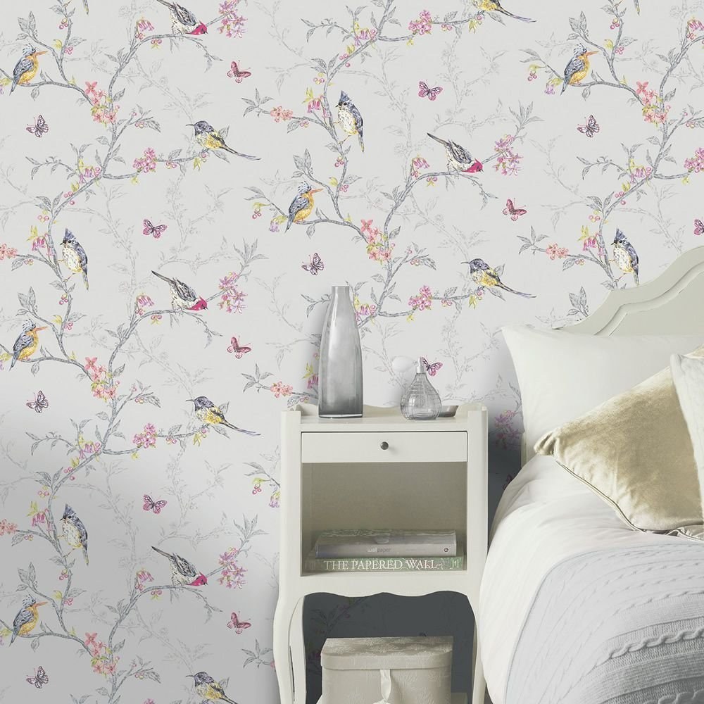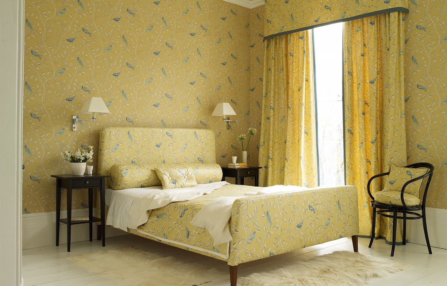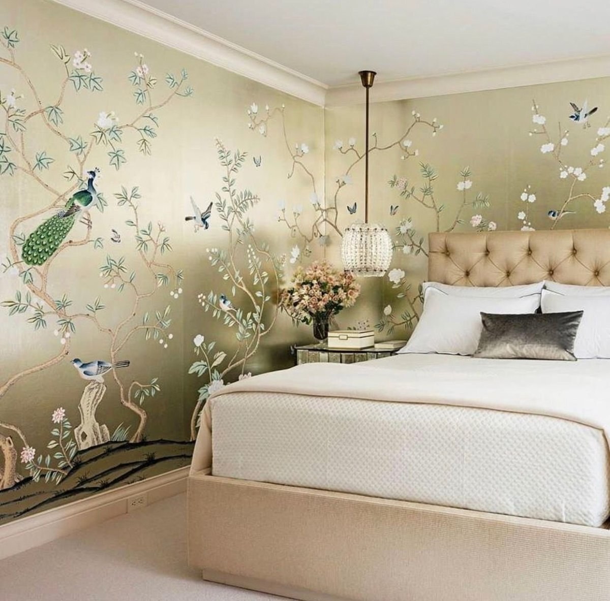 Обои с птичками в интерьере спальни с чем сочетаются (94 фото)