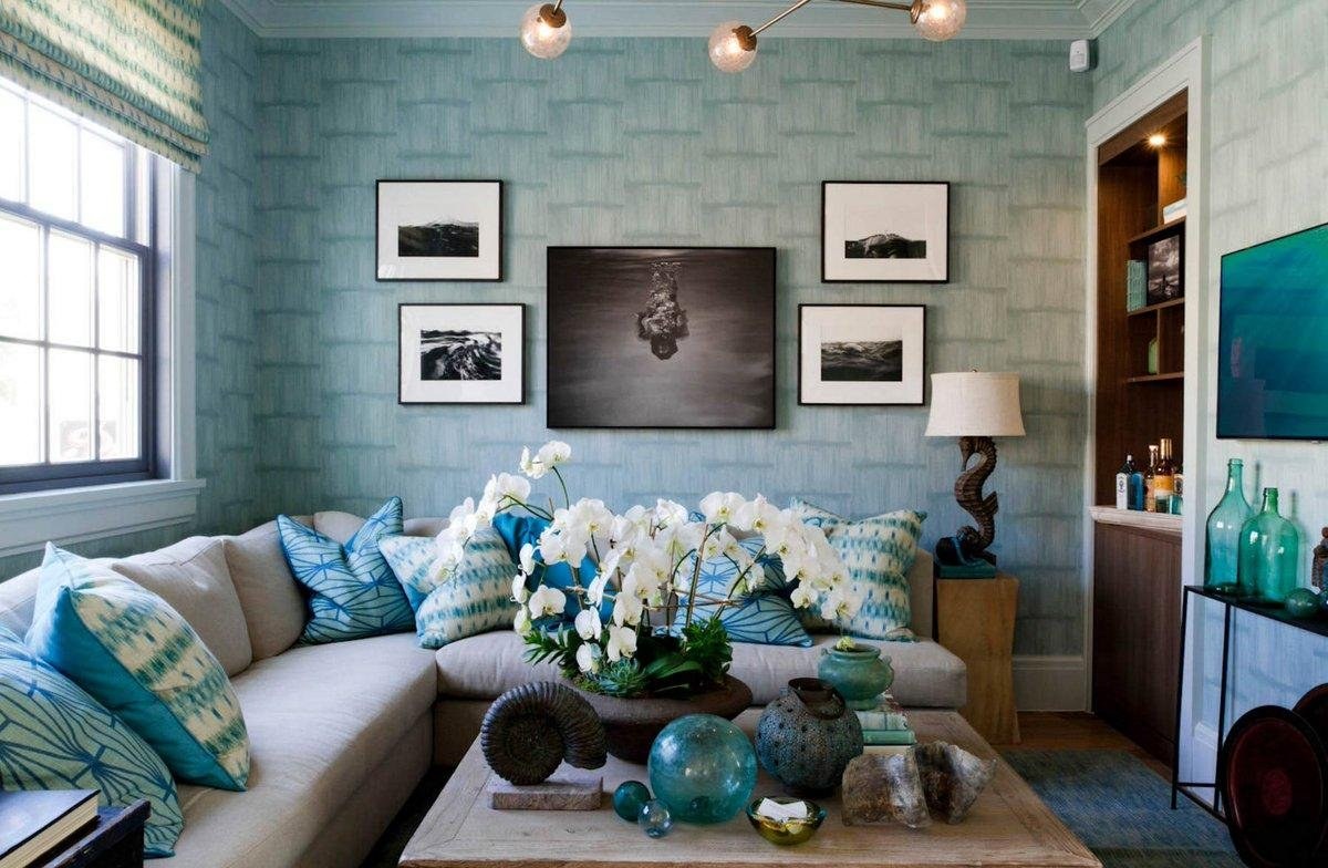 Бирюза в интерьере гостиной