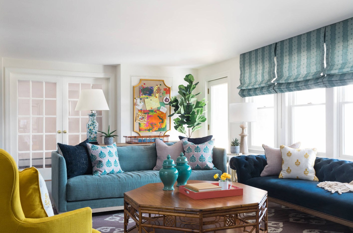 Сочетание синего и желтого в интерьере