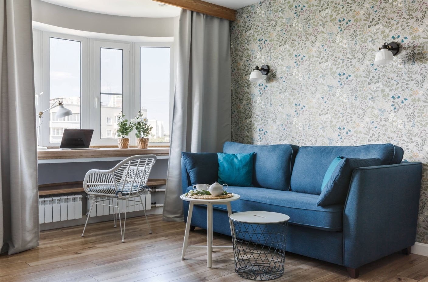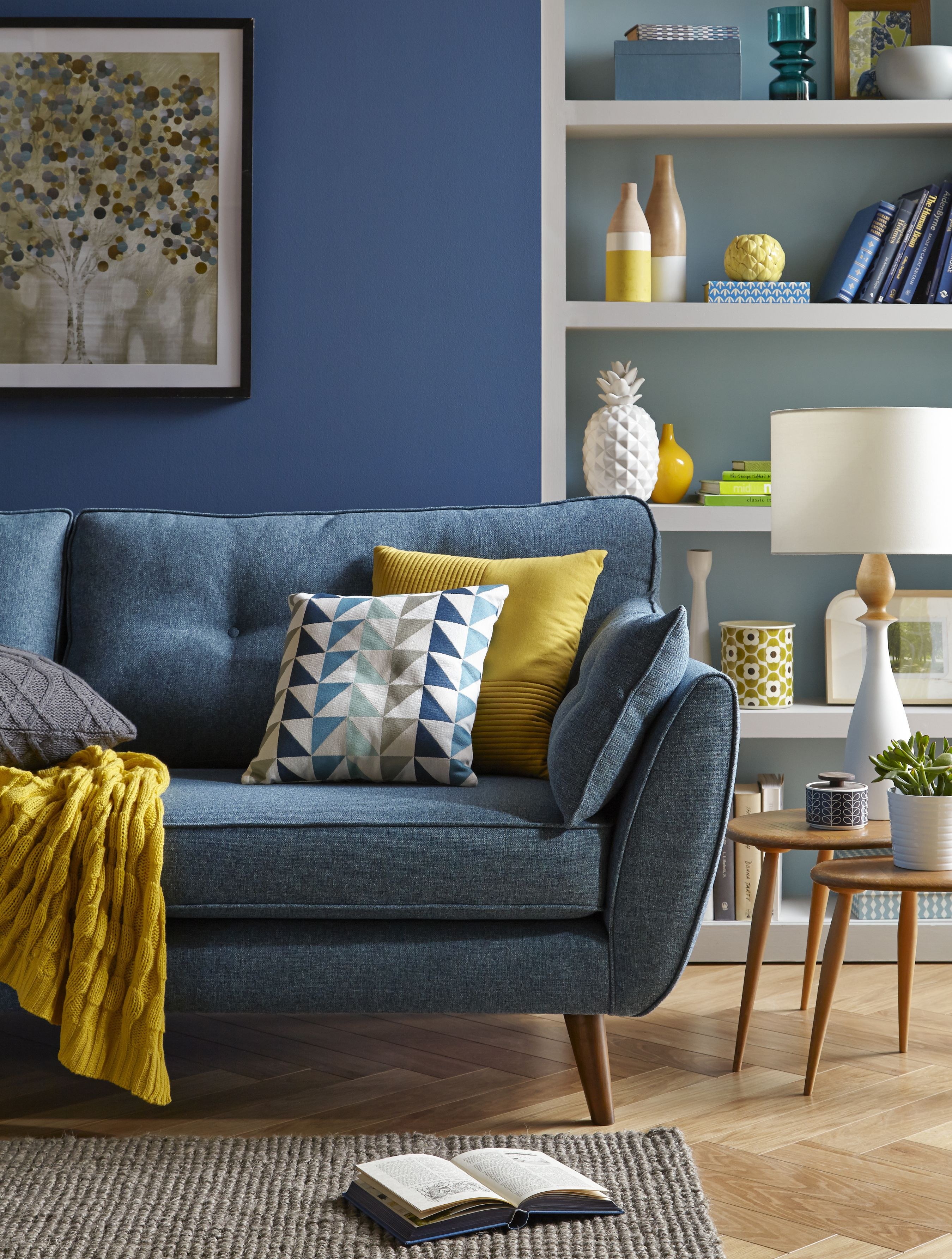 Гостиная с синим диваном