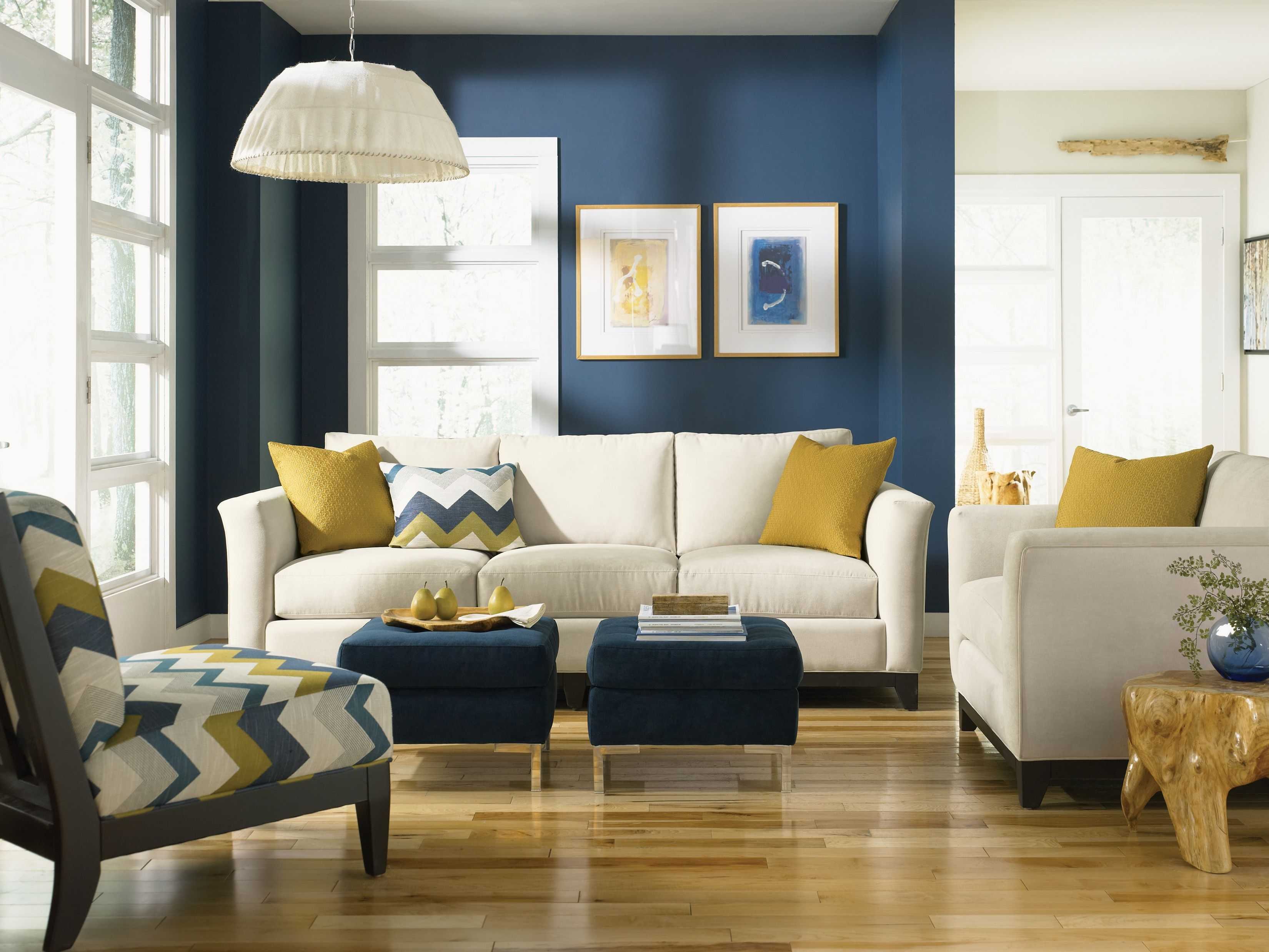 Синяя мебель в интерьере гостиной