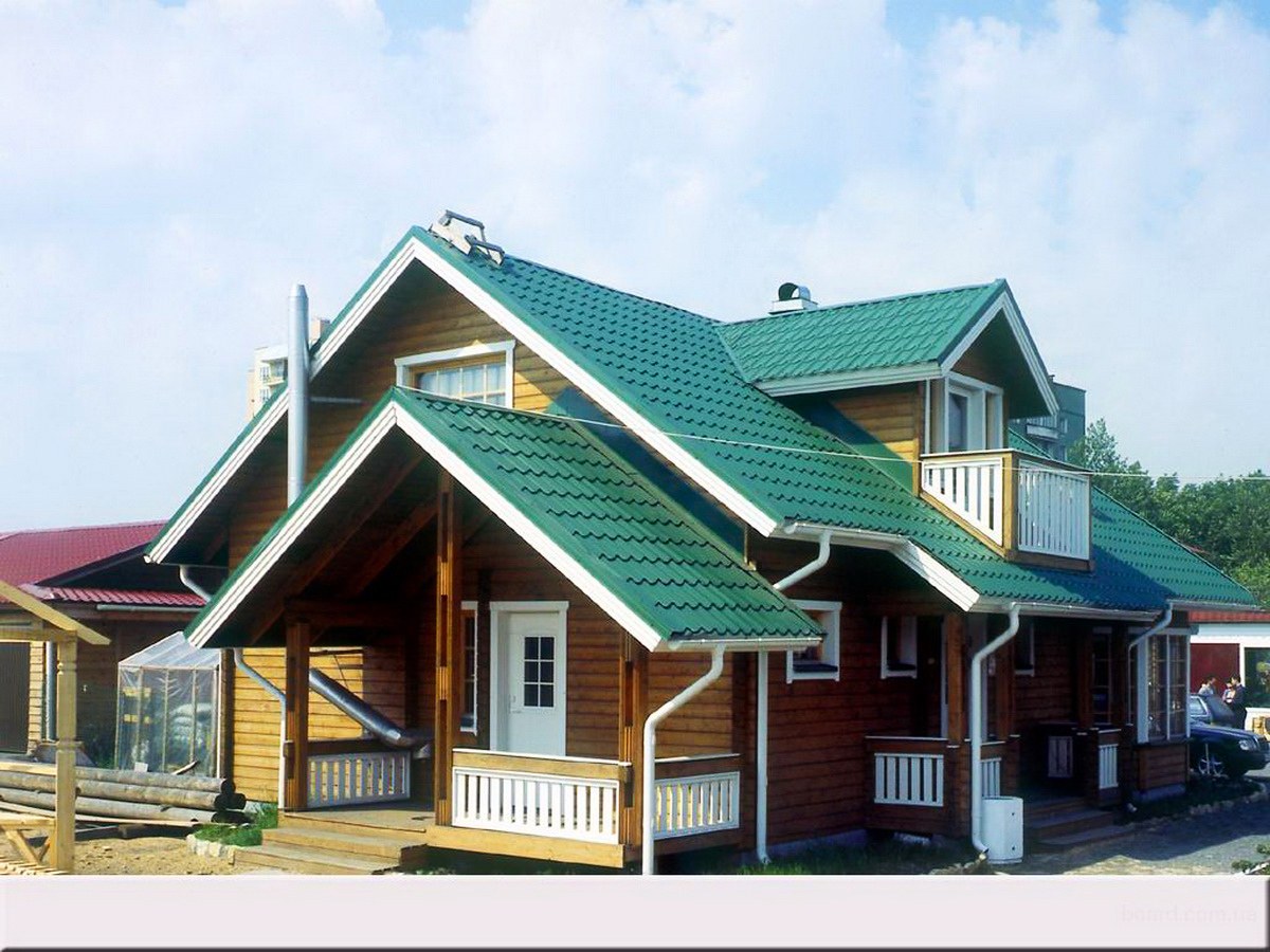Деревянные дома с зеленой крышей