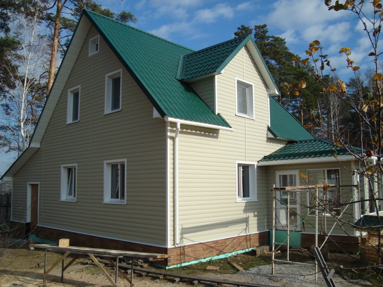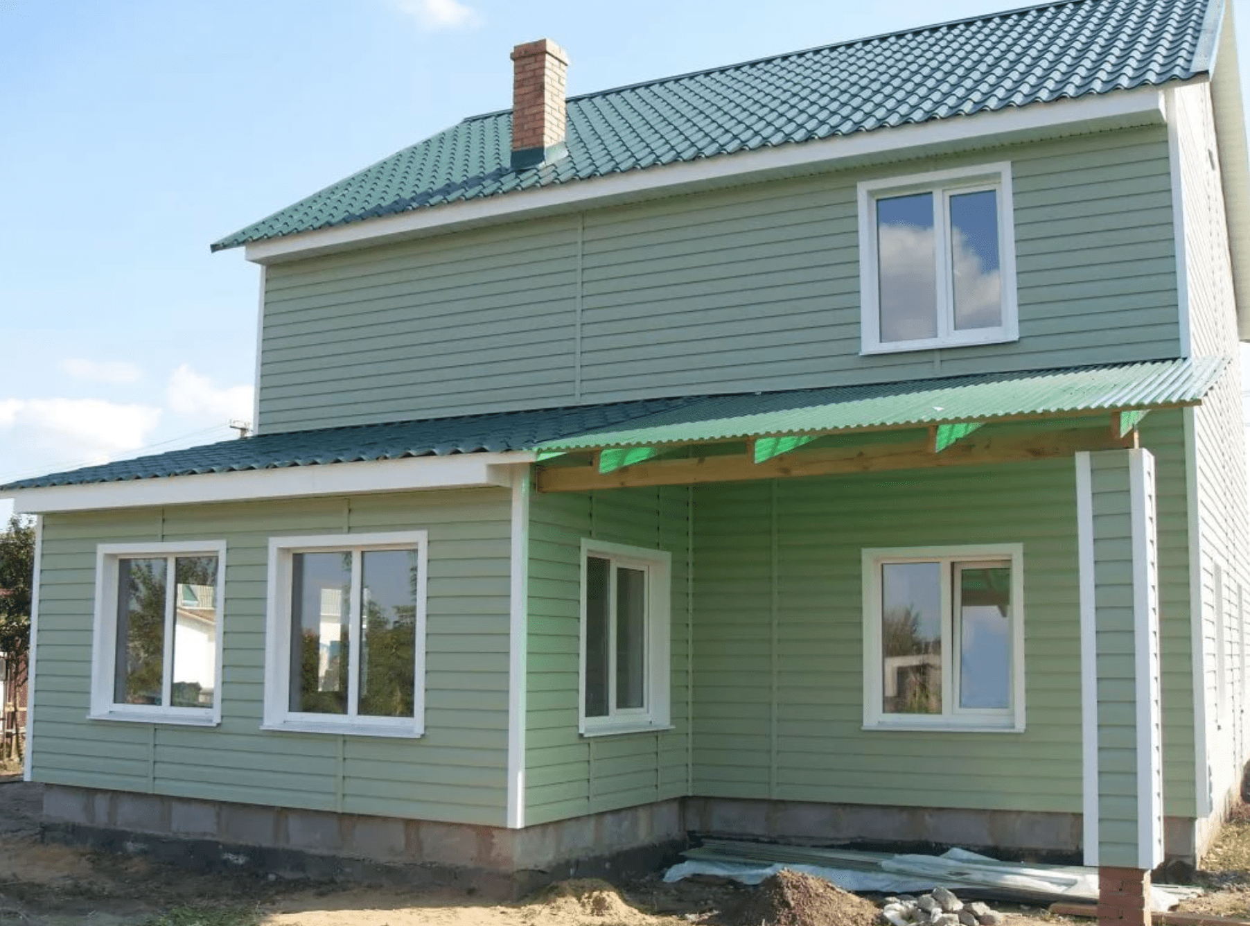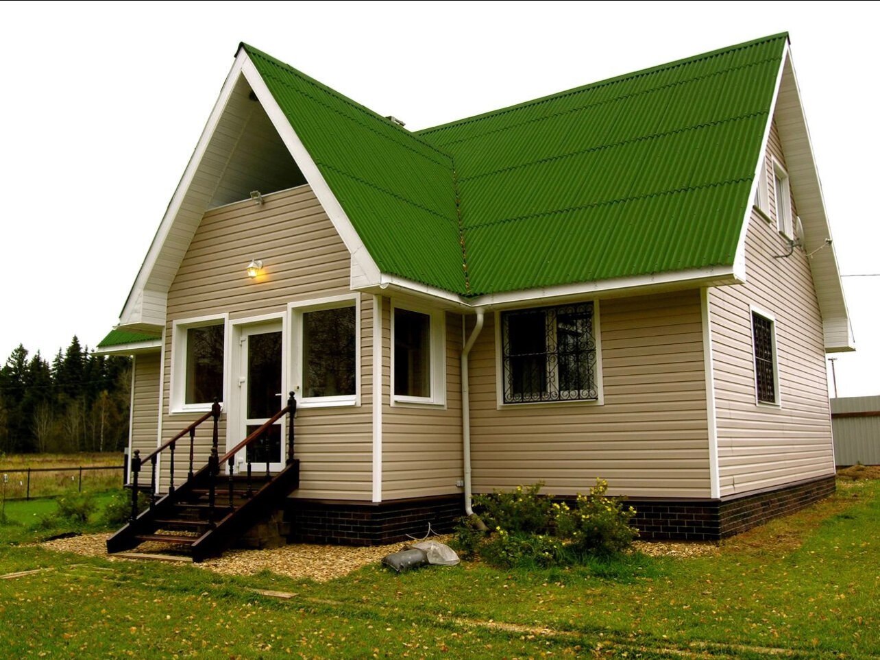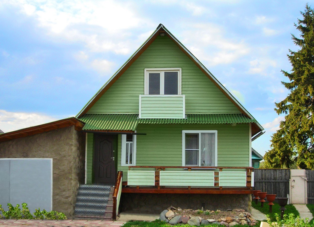 Цвет для покраски дома если крыша зеленая (93 фото)