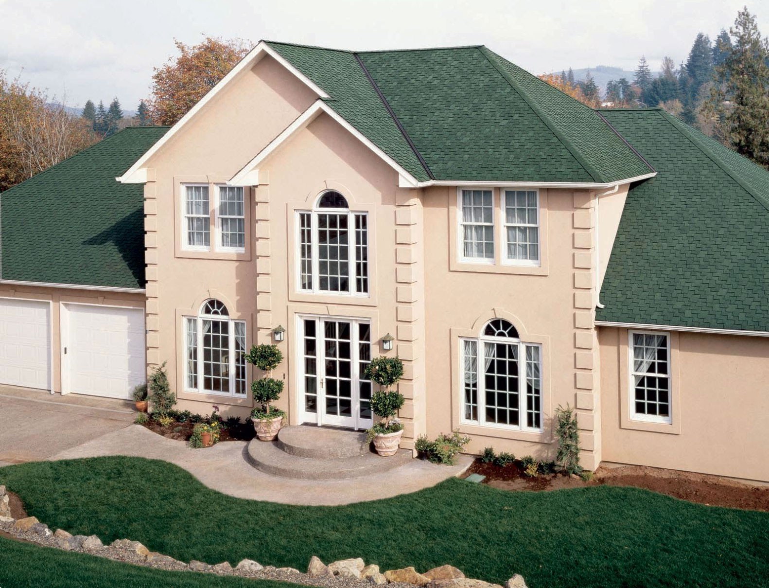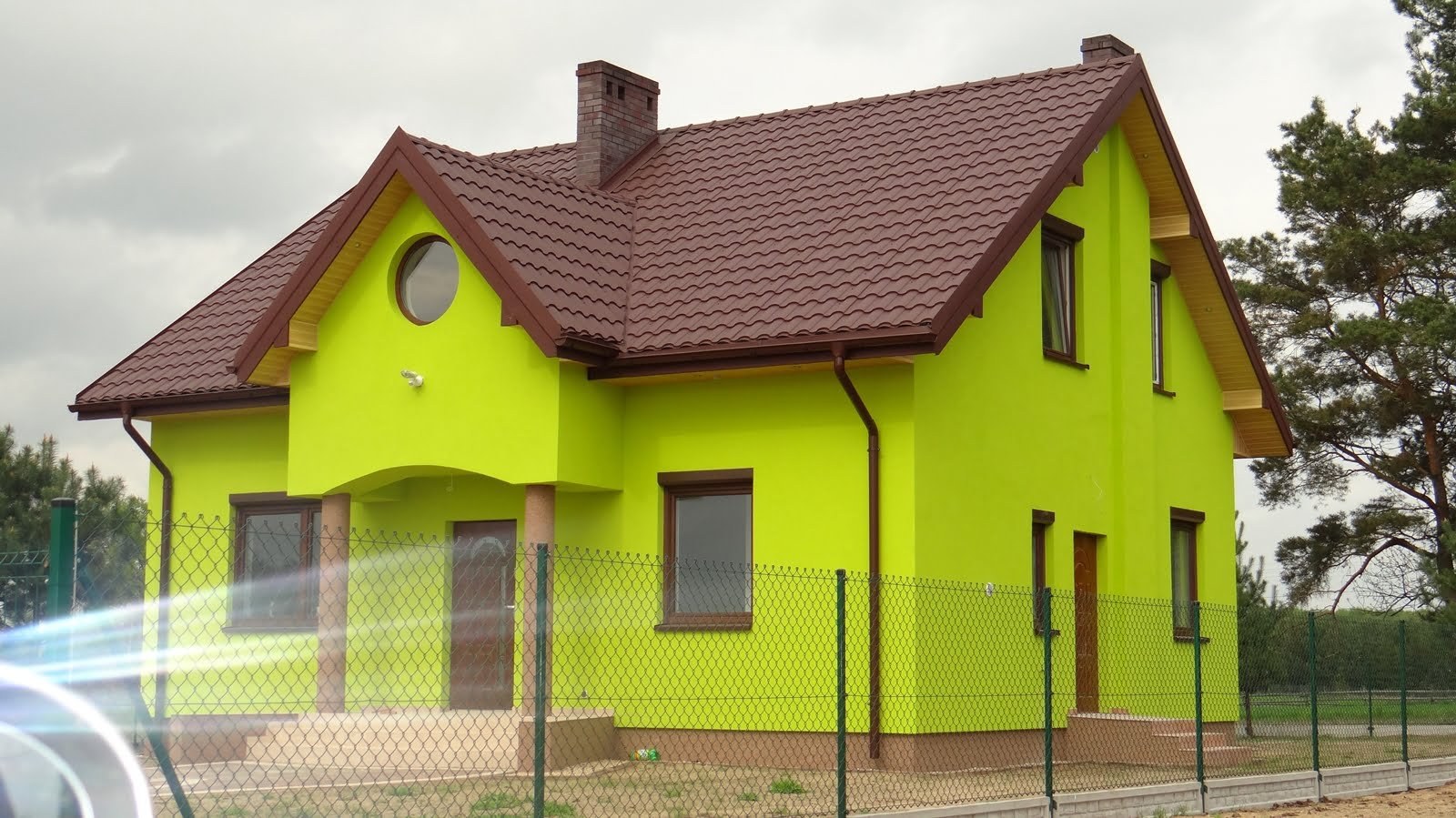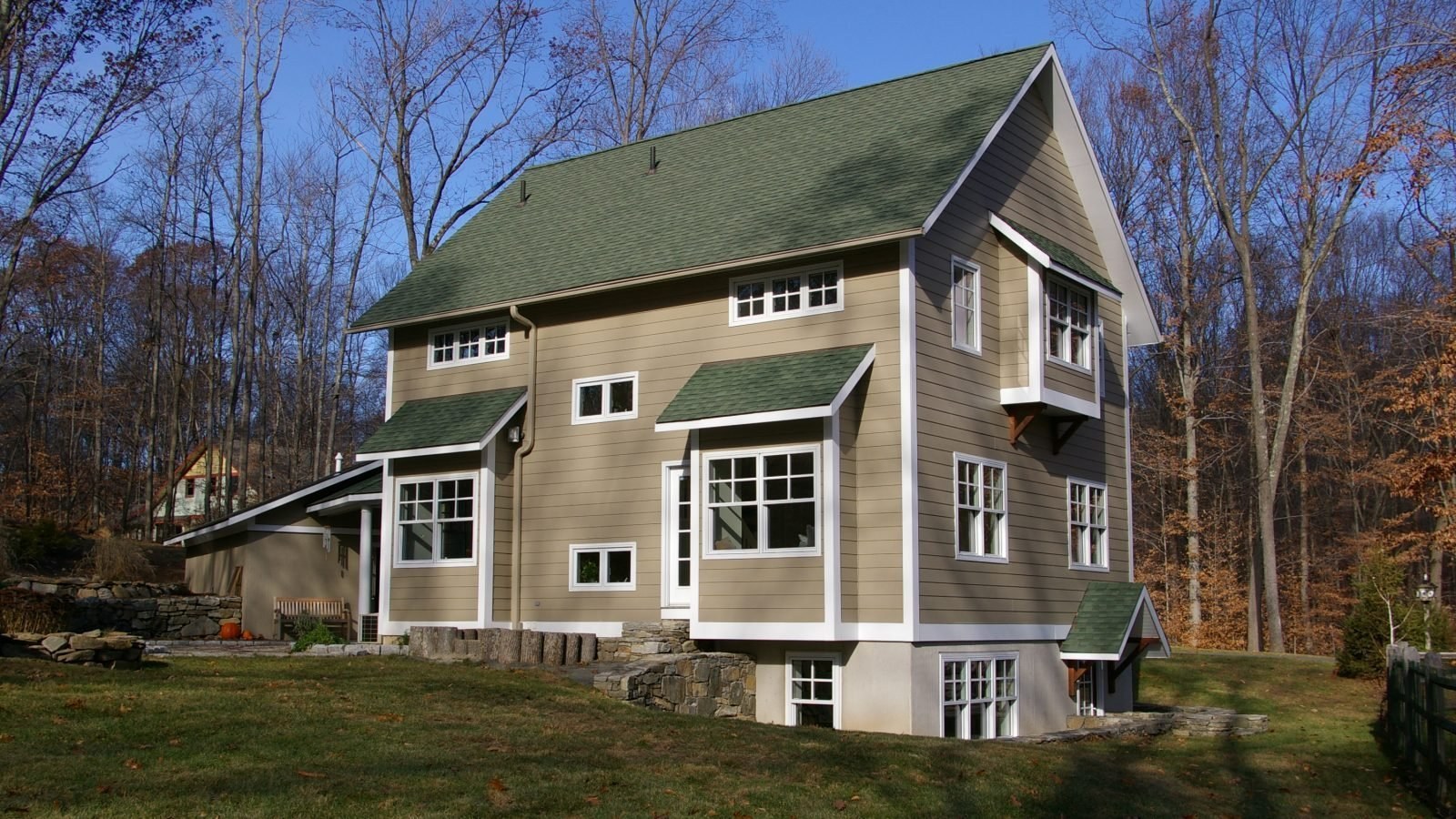 Цвет для покраски дома если крыша зеленая (93 фото)