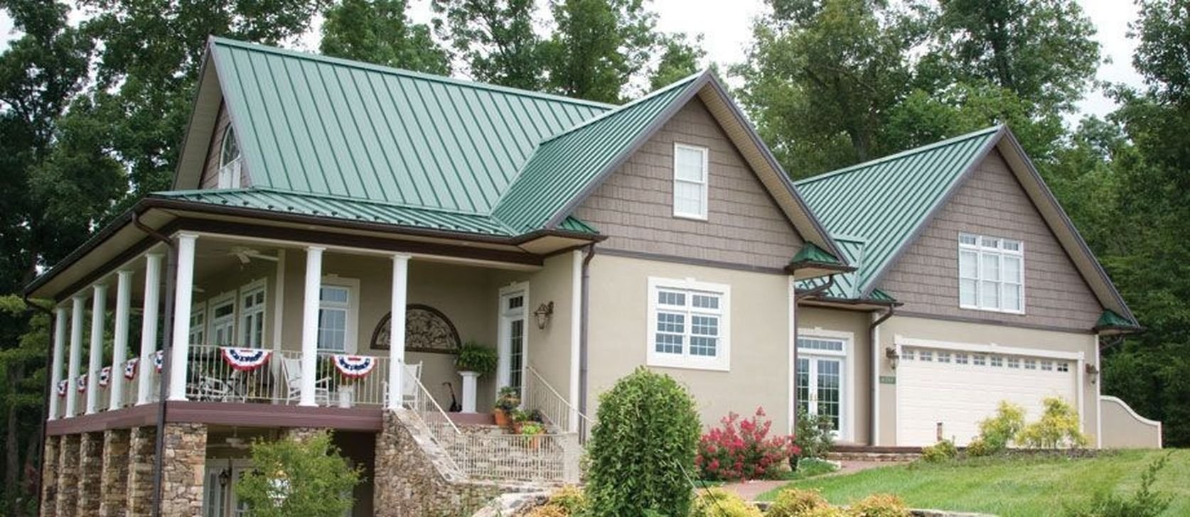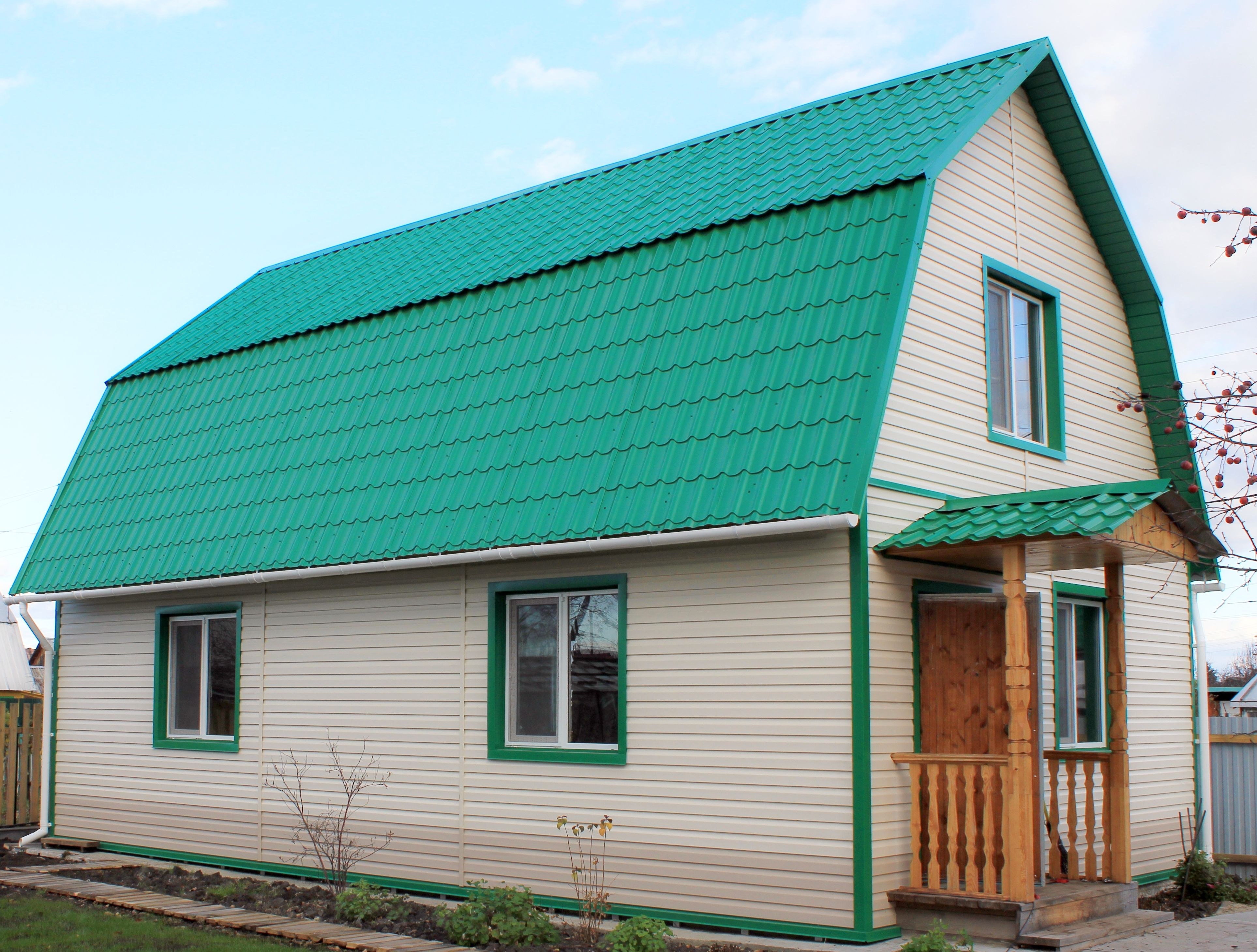 Дом с зеленой крышей цвет фасада