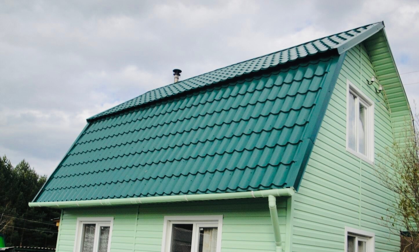 Дачный дом с зеленой крышей