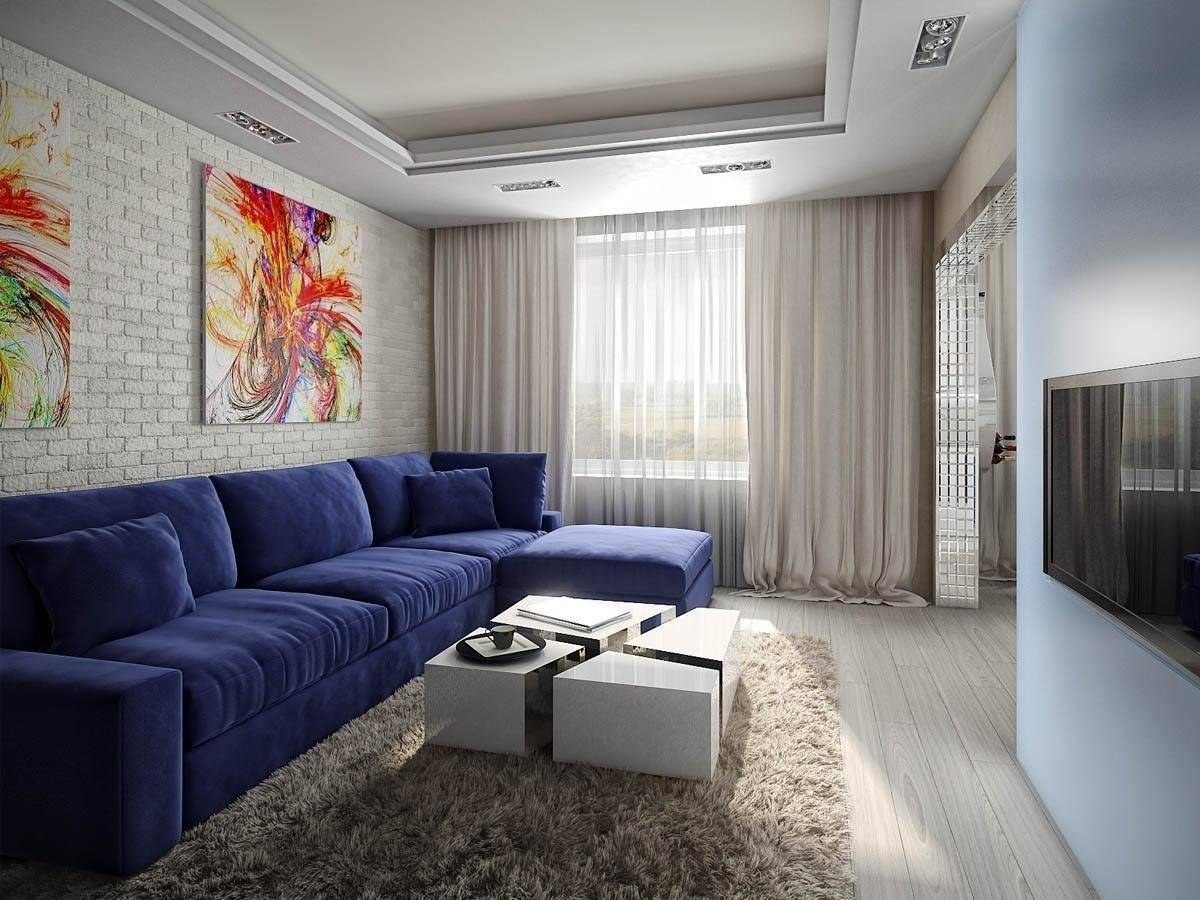 Гостиная с синим диваном дизайн