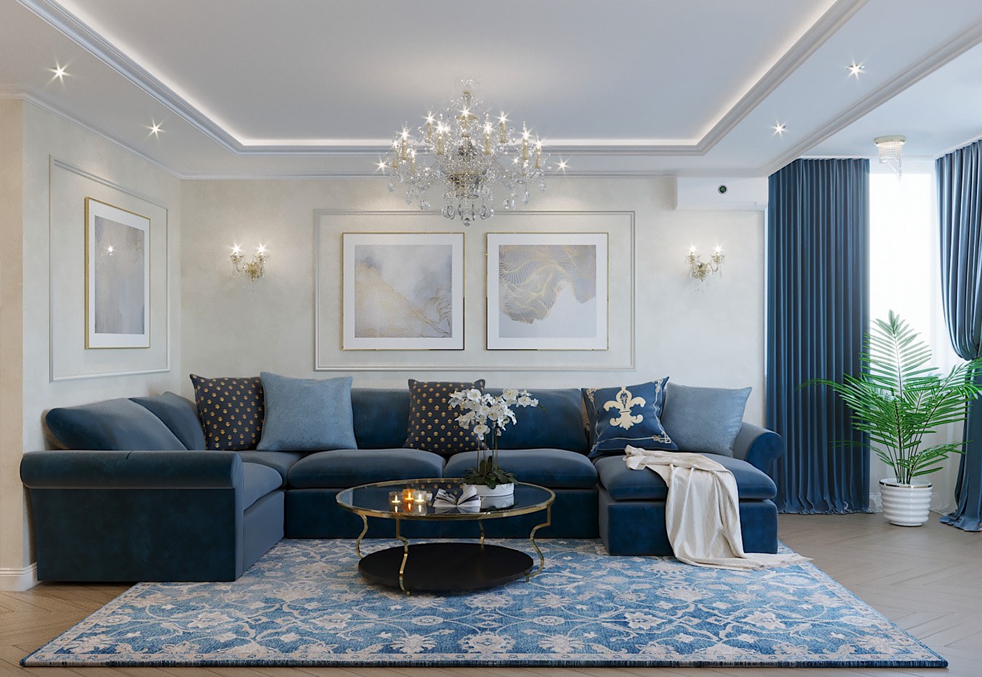 Гостиная в голубых тонах