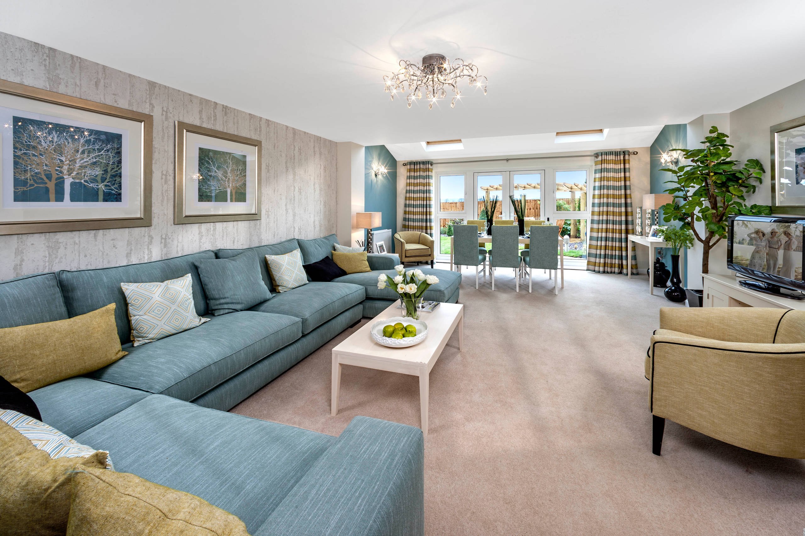 Гостиная с голубым диваном