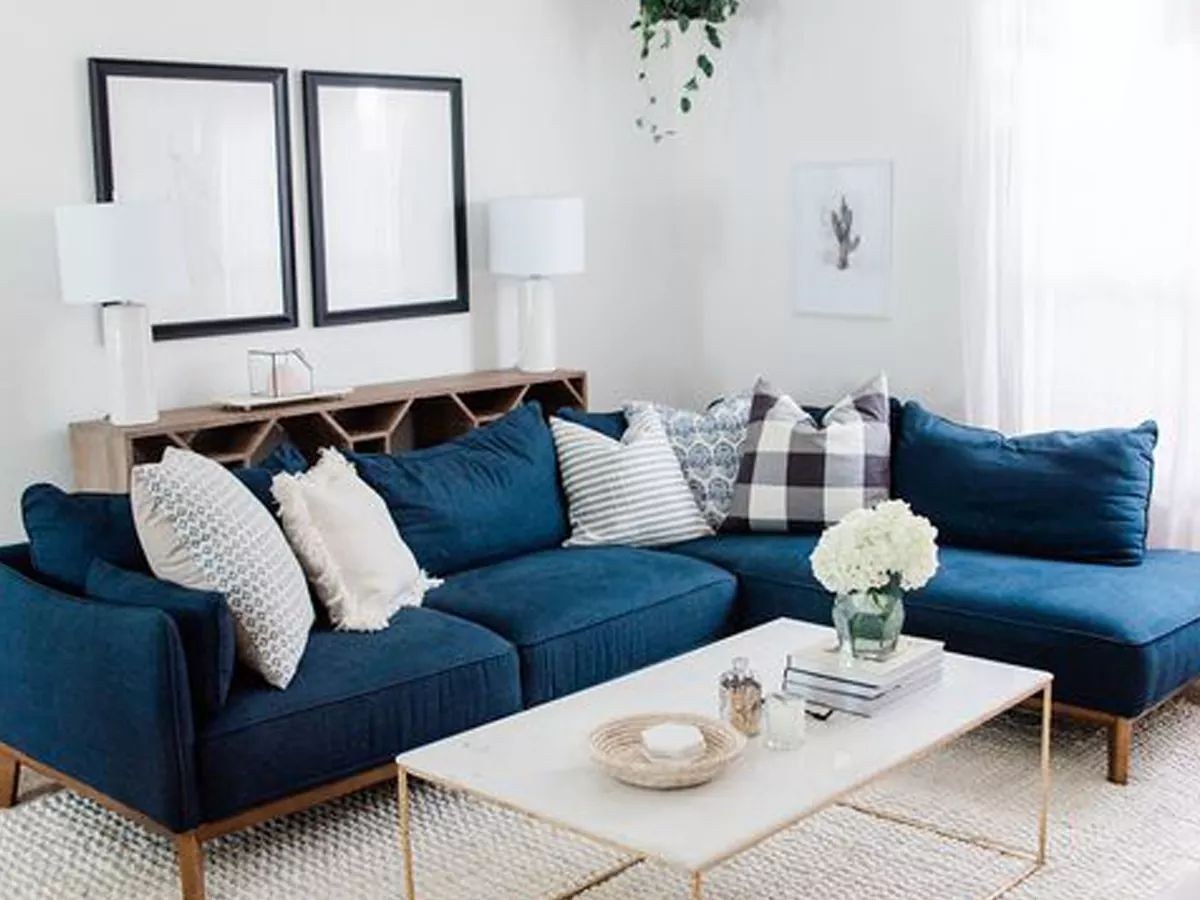 Синий диван в интерьере