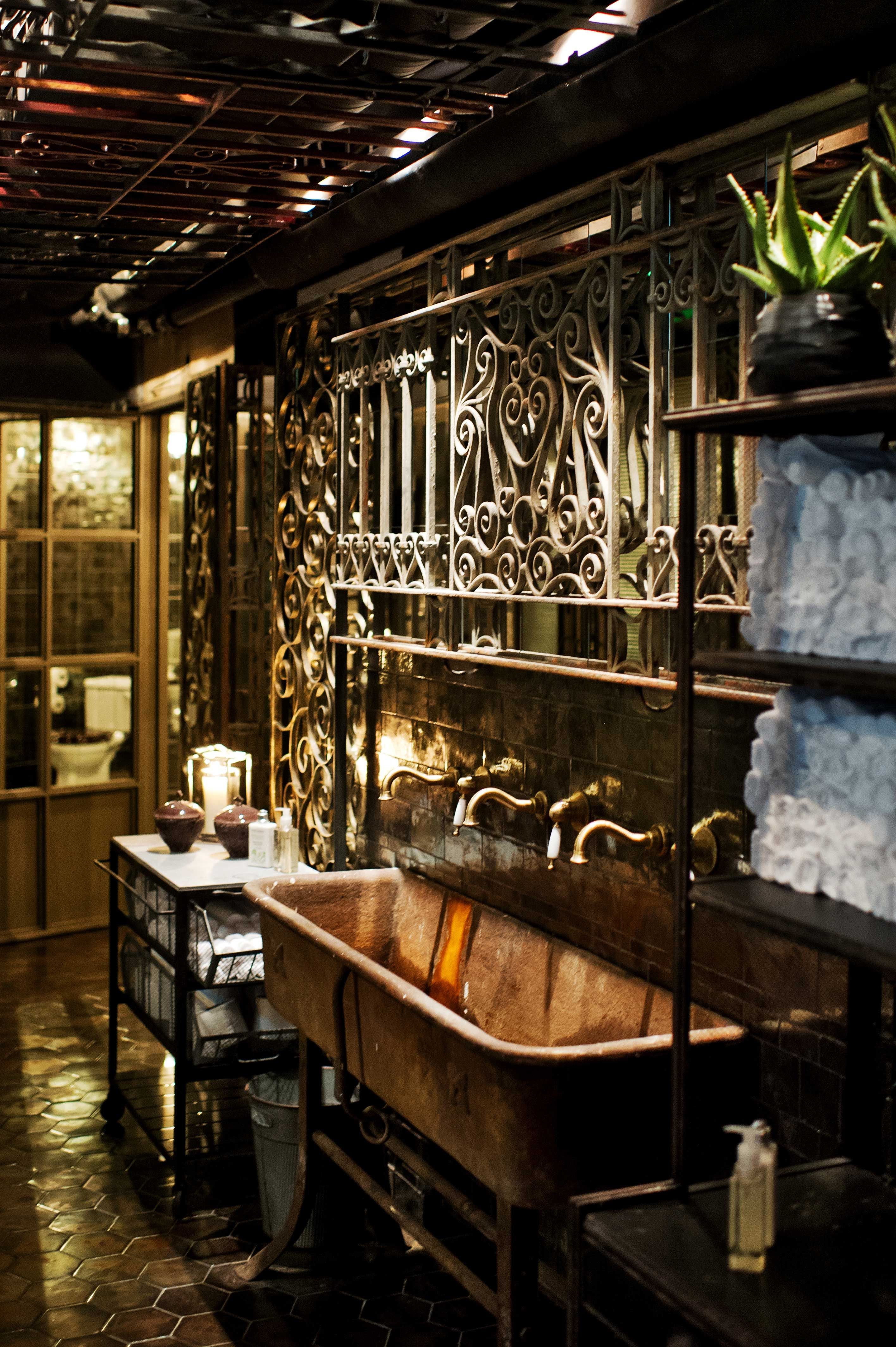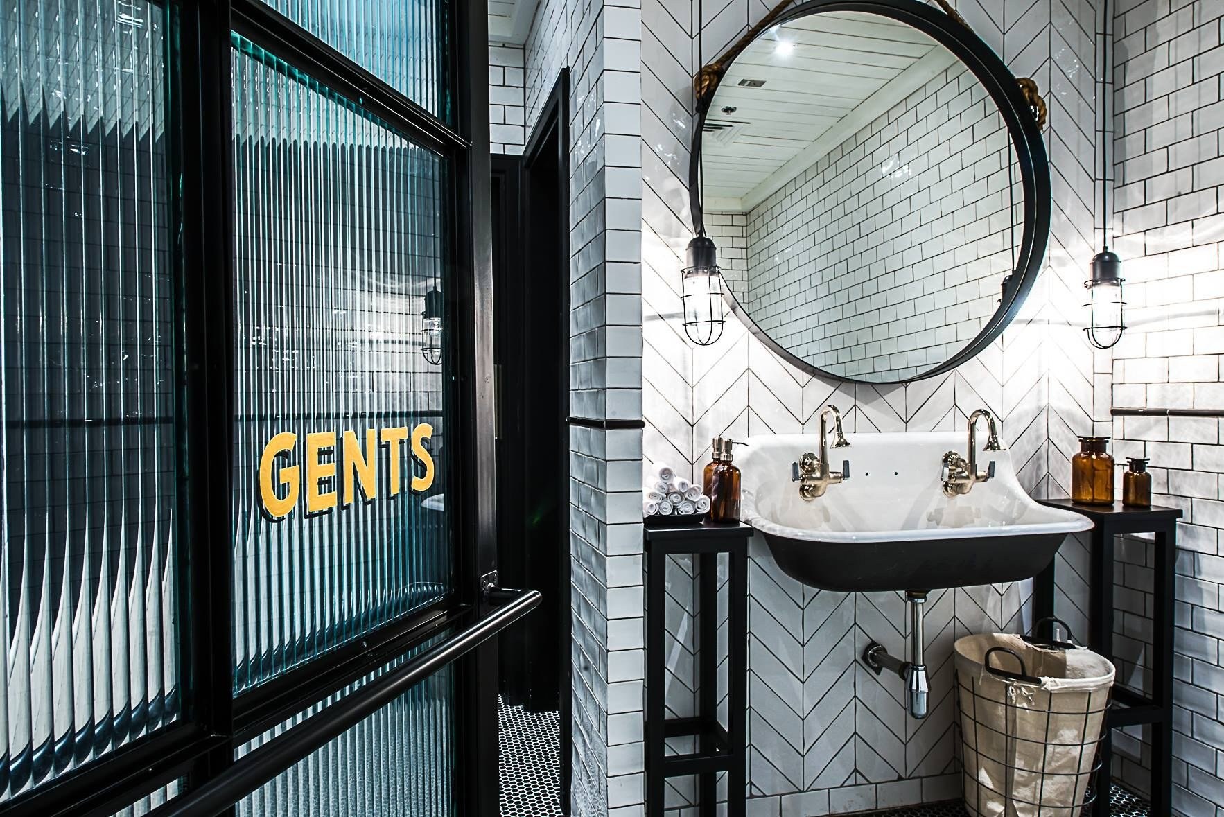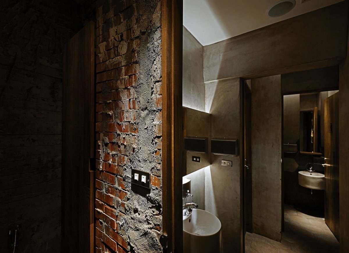 Санузел в стиле лофт в ресторане