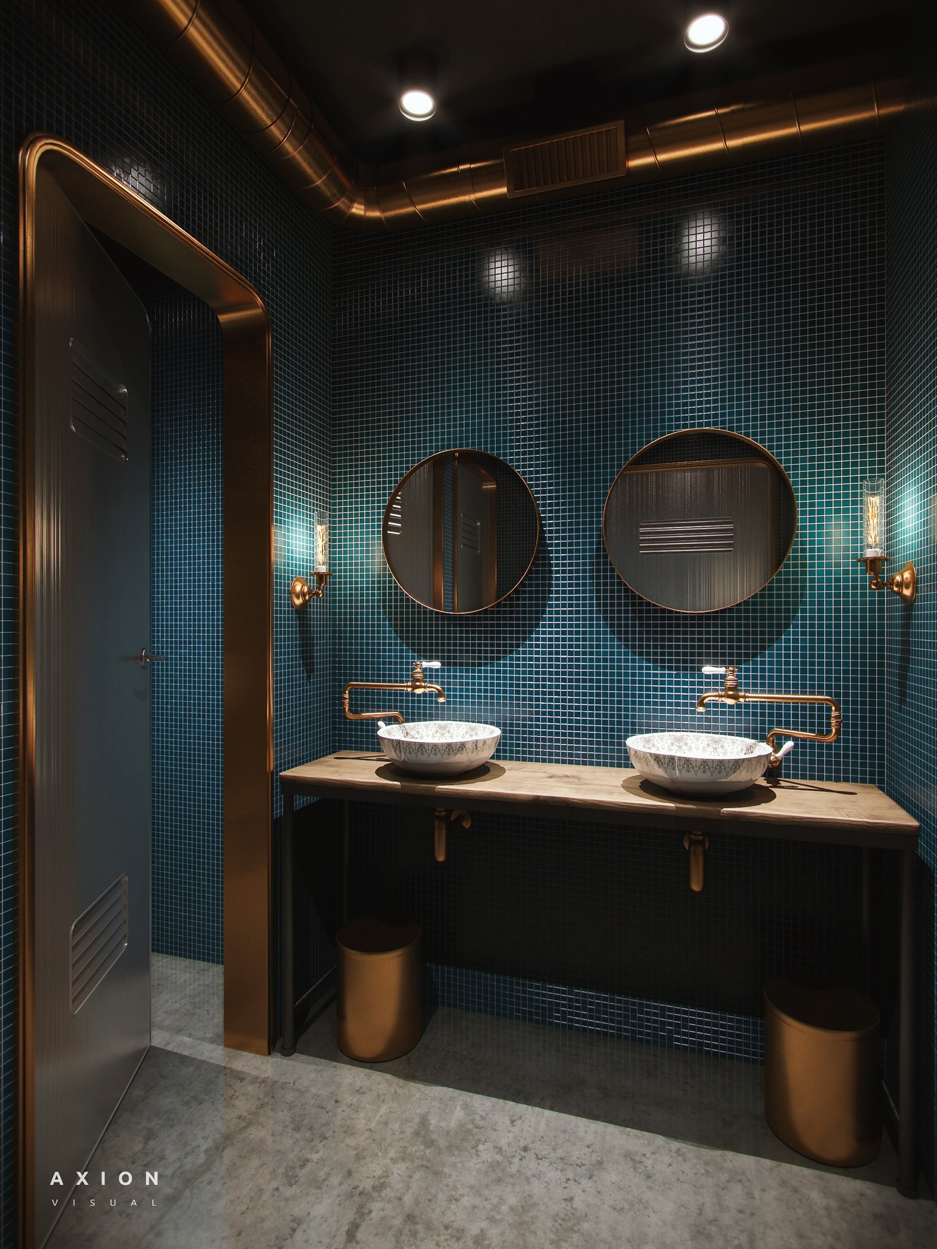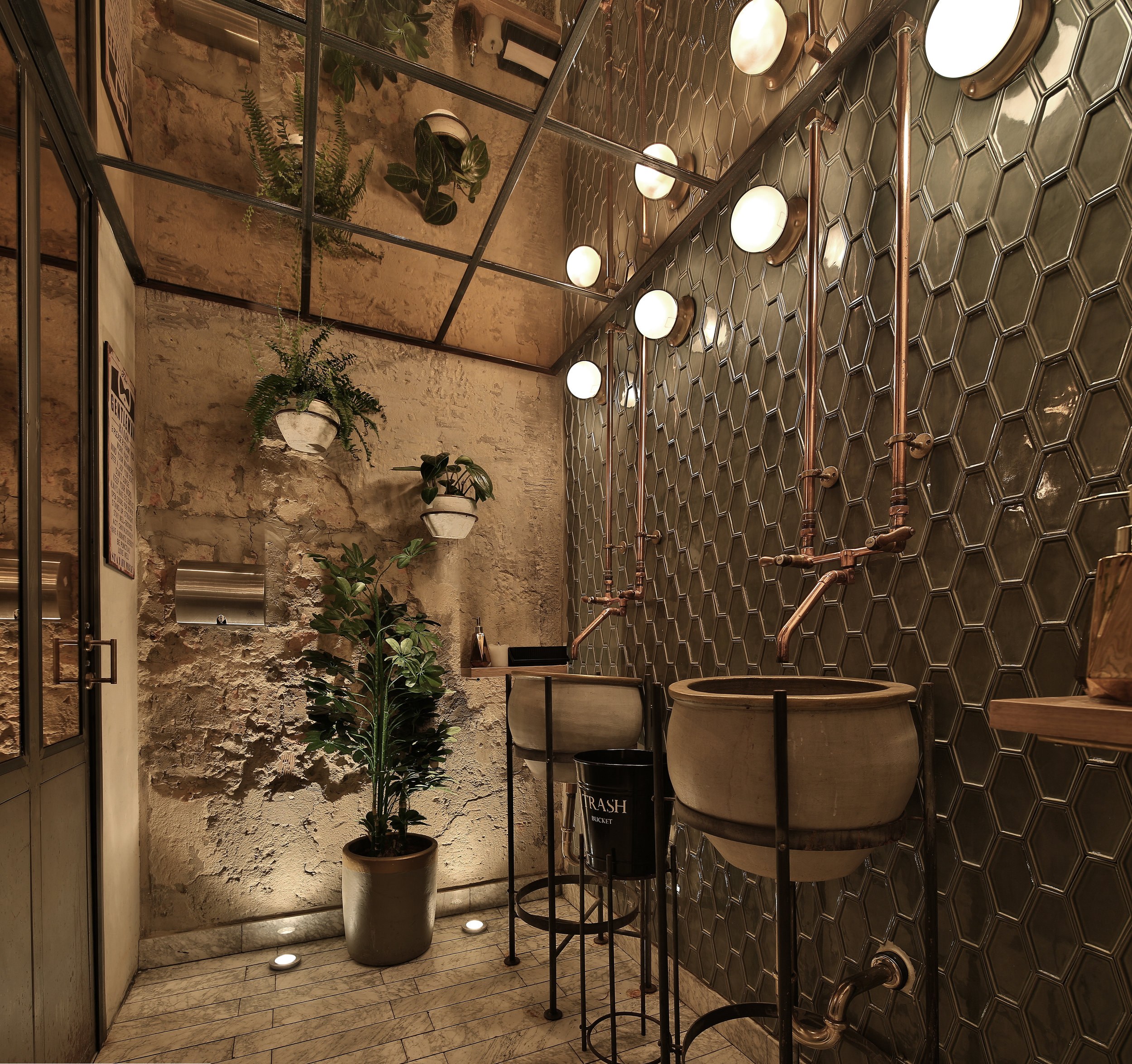 Общественный санузел в стиле лофт