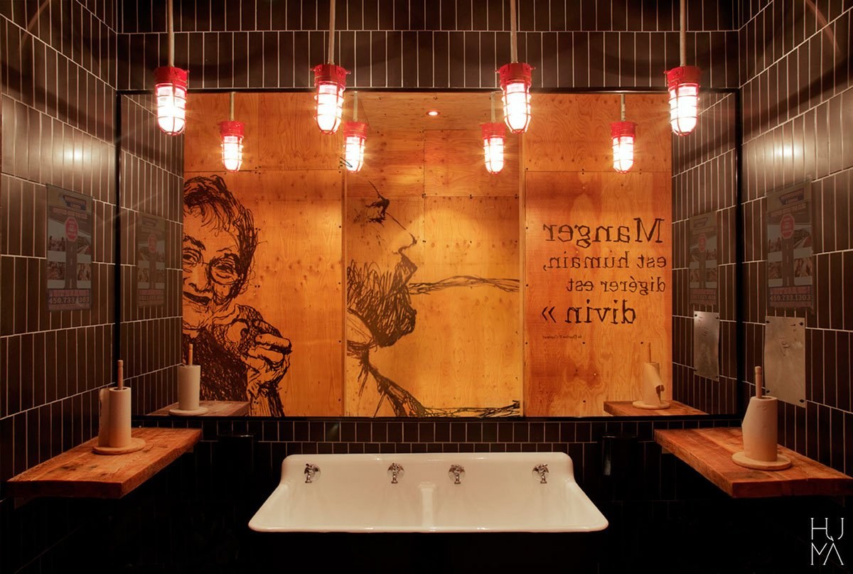 Интерьер туалета лофт в кафе