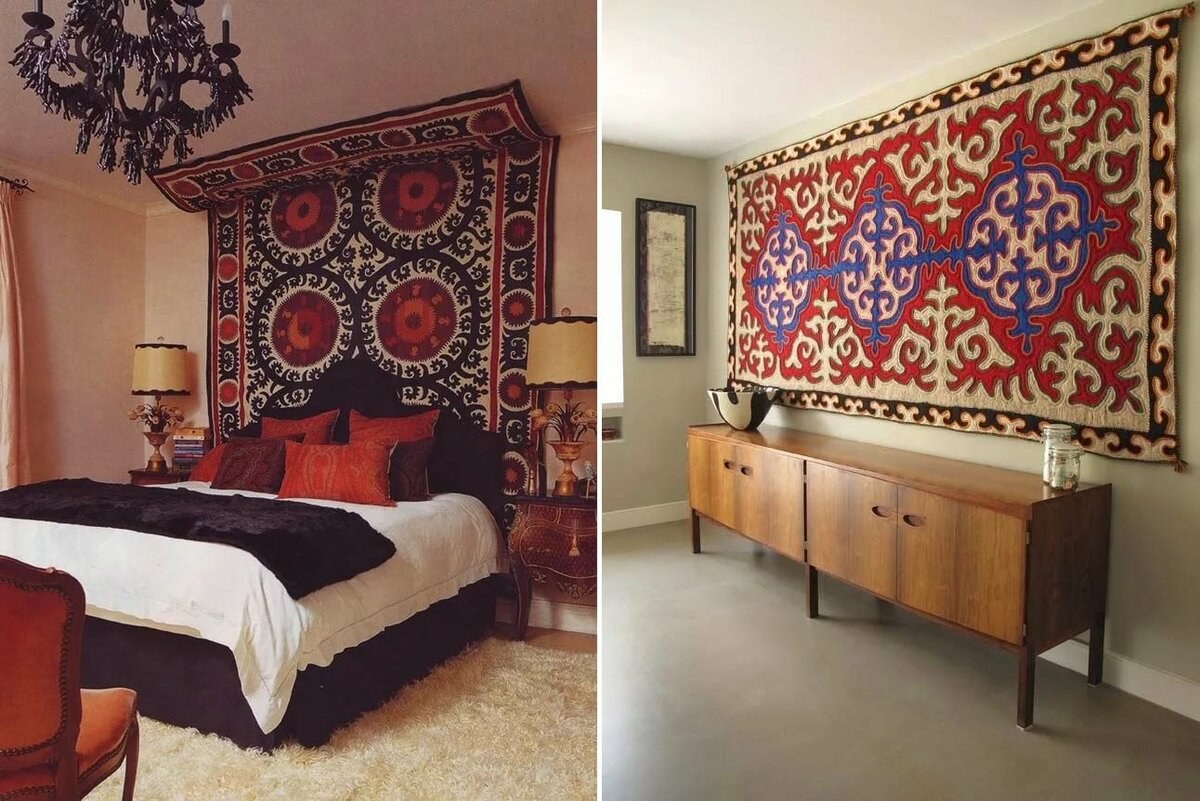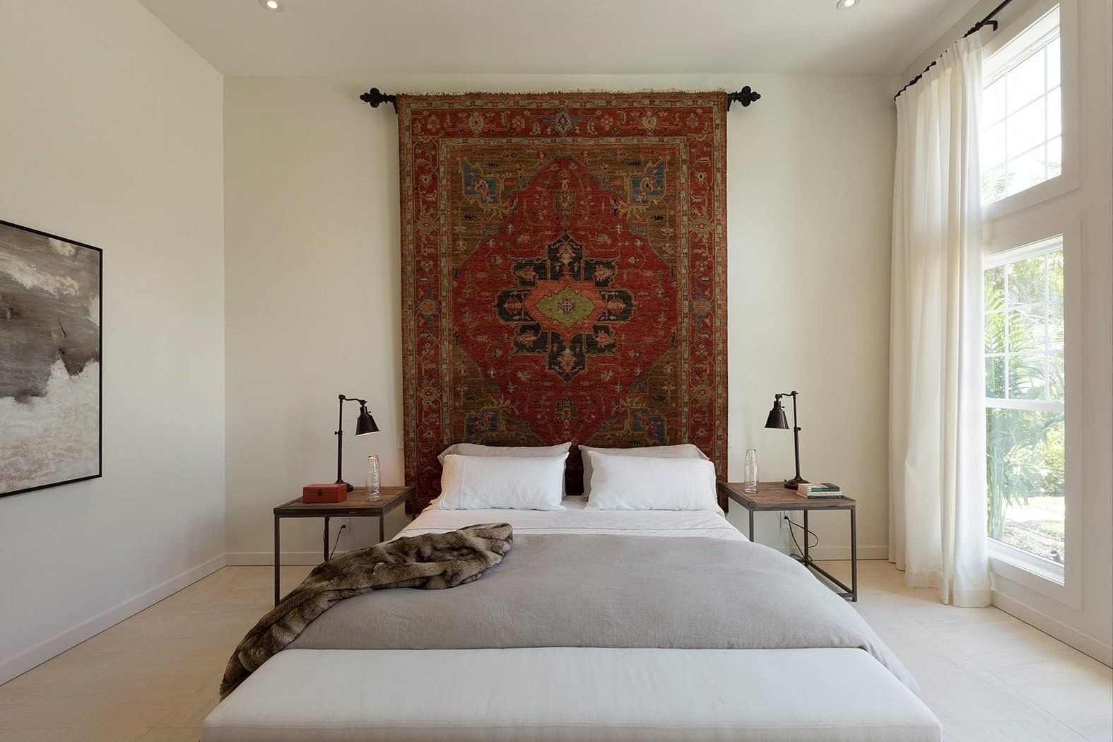 Ковер на стене в спальне в современном интерьере (95 фото)