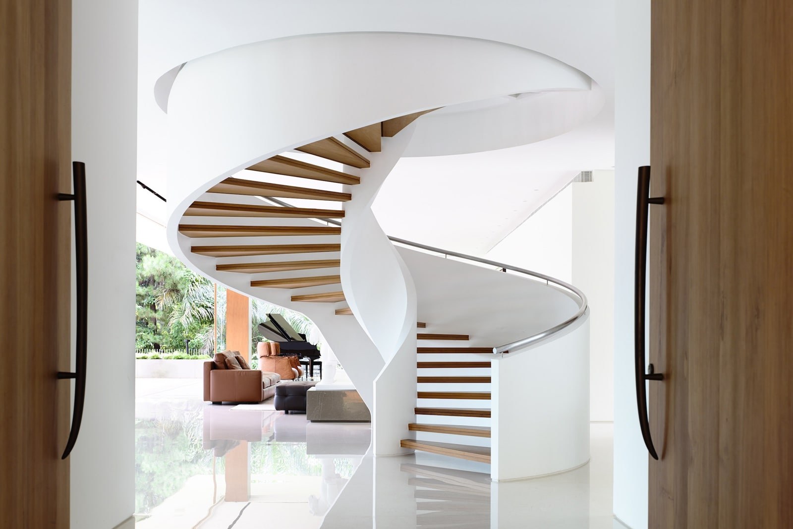 Круговая лестница на второй этаж в частном доме (87 фото)