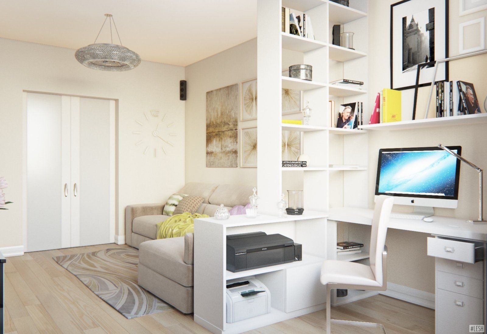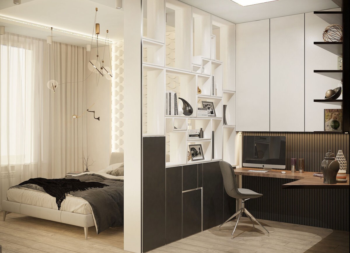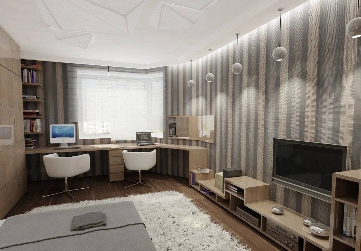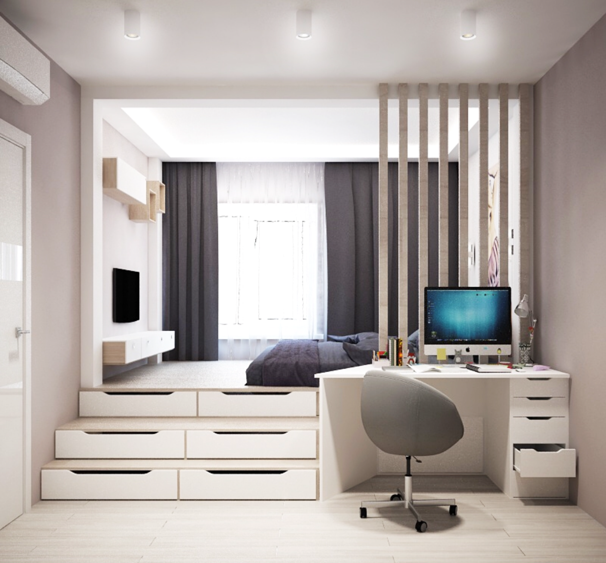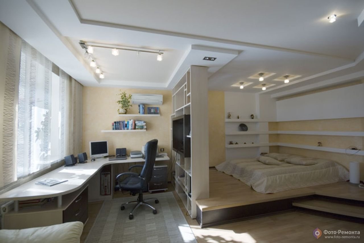 Спальня с кабинетом в одной комнате зонирование (98 фото)