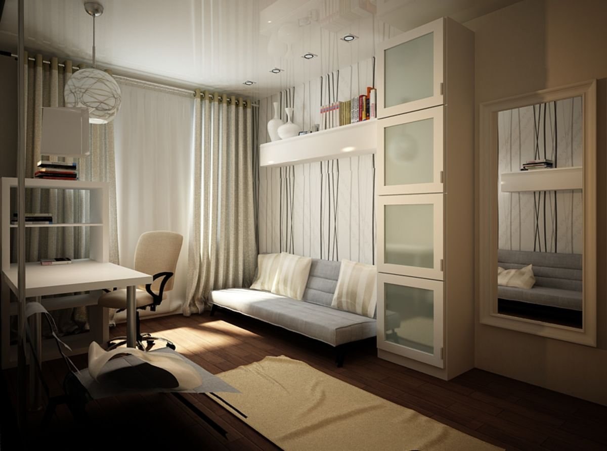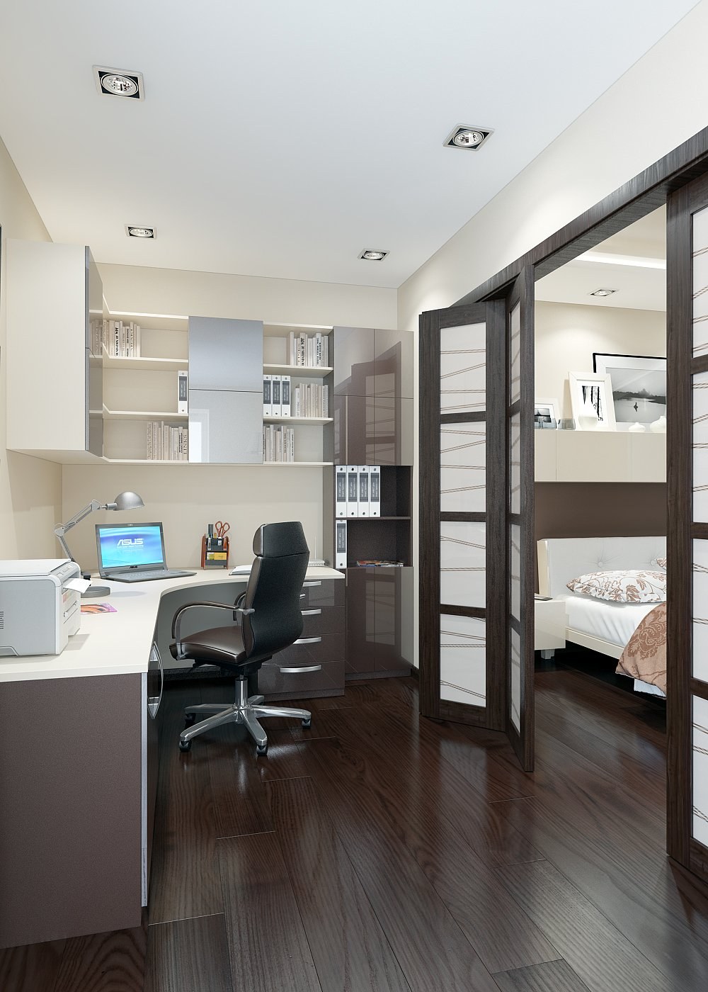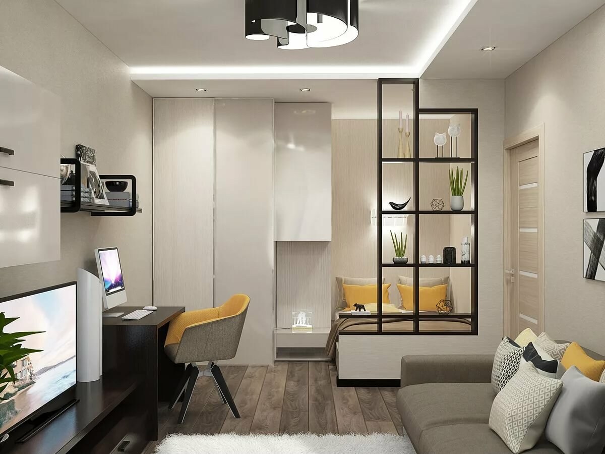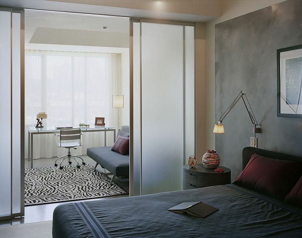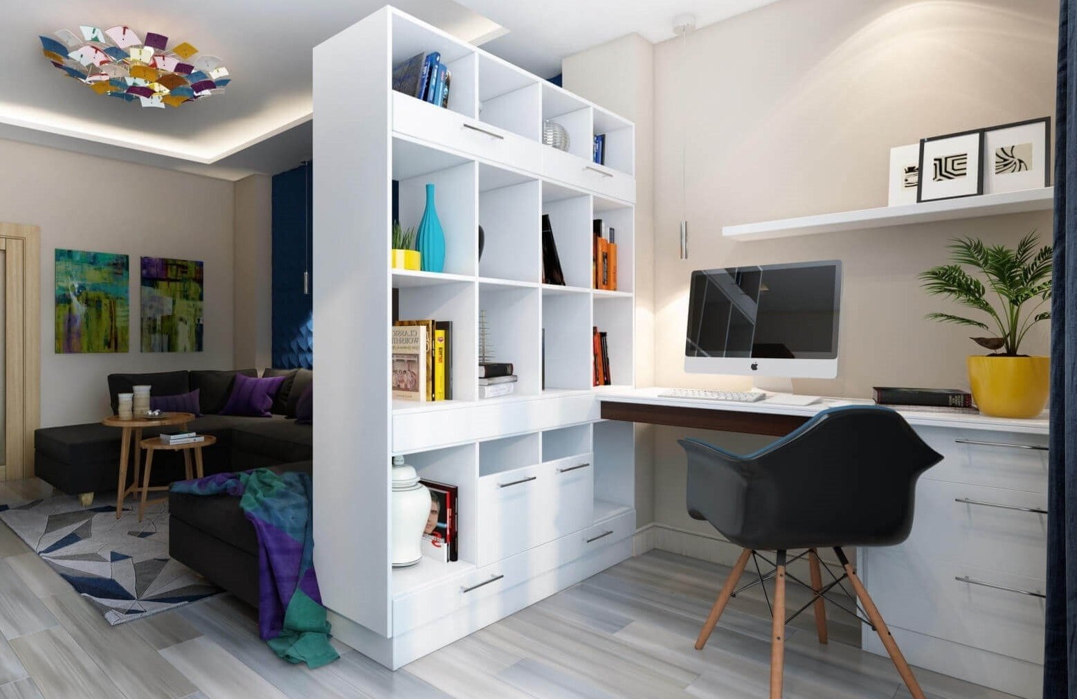 Спальня с кабинетом в одной комнате зонирование (98 фото)